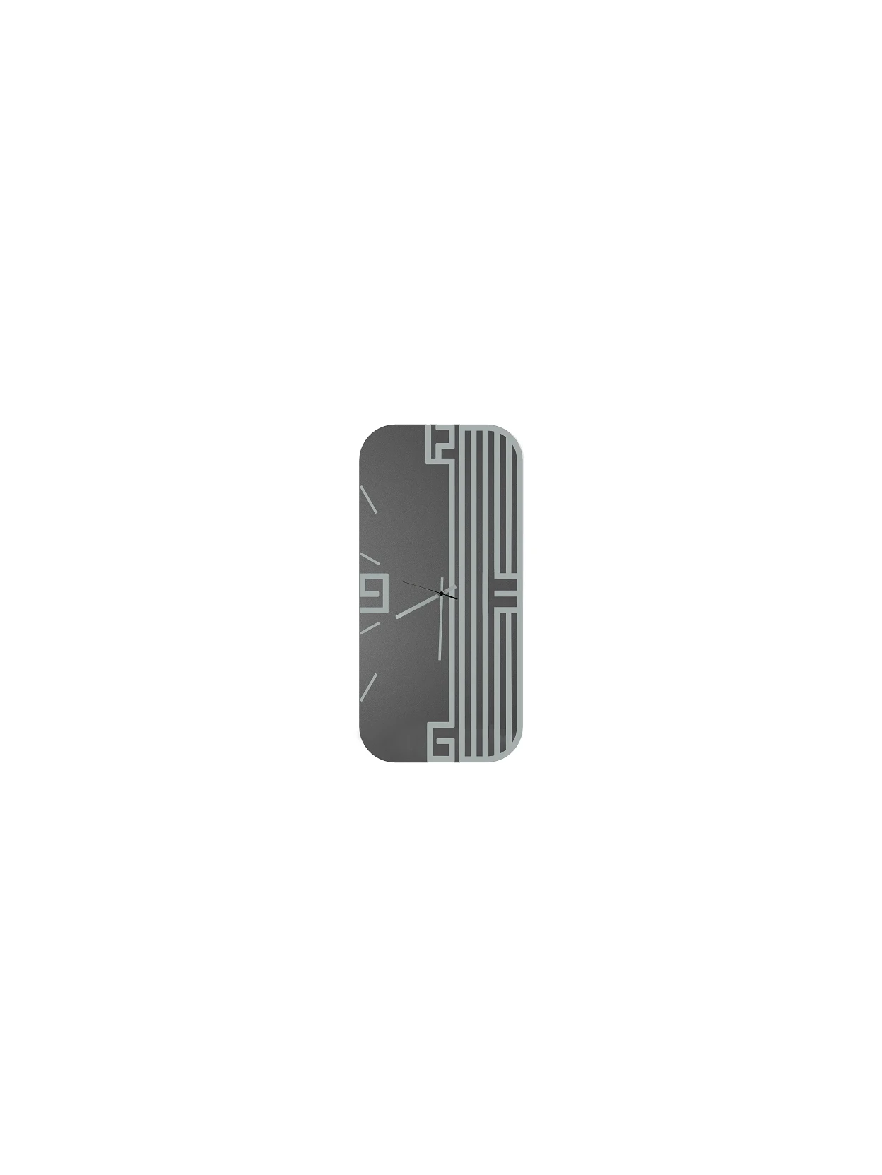 Lyra Vertical is a vertical wall clock with a smoked black mirror base and a raised silver-painted metal decoration. Modern elegance and Italian craftsmanship.