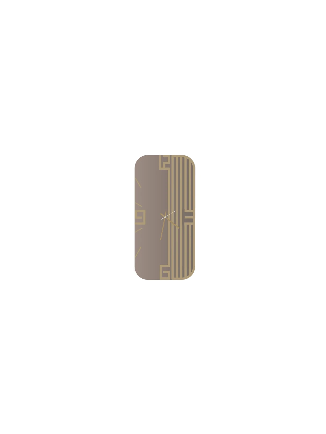 Lyra is a vertical wall clock with a copper-plated mirror base and a metallic gold embossed decoration. Modern elegance and Made in Italy craftsmanship.