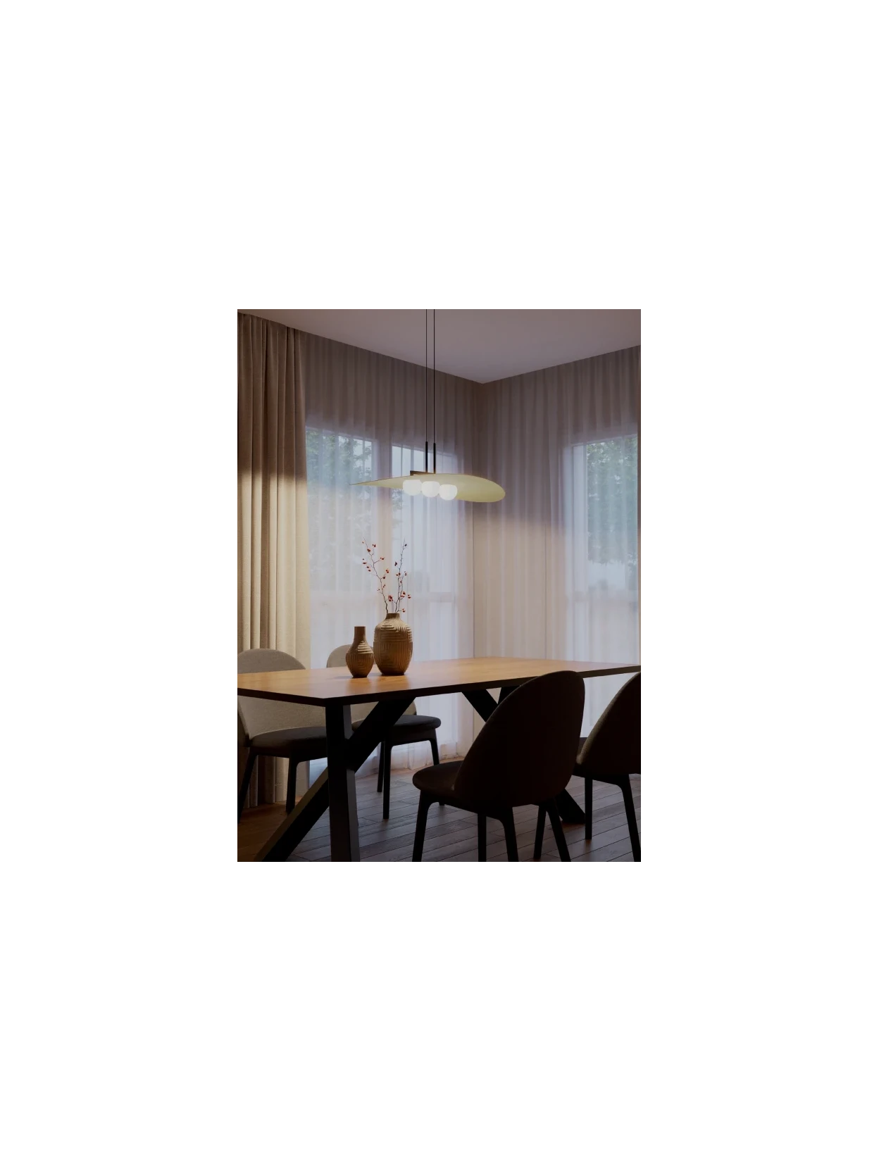 Cody by Redo Group is an indoor pendant lamp with a triple light source, perfect for environments that require a stage presence and effective lighting. Matt black powder-coated metal structure, matt gold aluminum lampshade and opal blown glass diffusers, for a warm, soft light with great visual impact. Equipped with 3 9W CREE COB LEDs, color temperature 3000K, total luminous flux 2700 lm (system: 1600 lm), CRI 90. Not dimmable. Perfect for dining tables, living areas or contract environments with a strong and modern style.