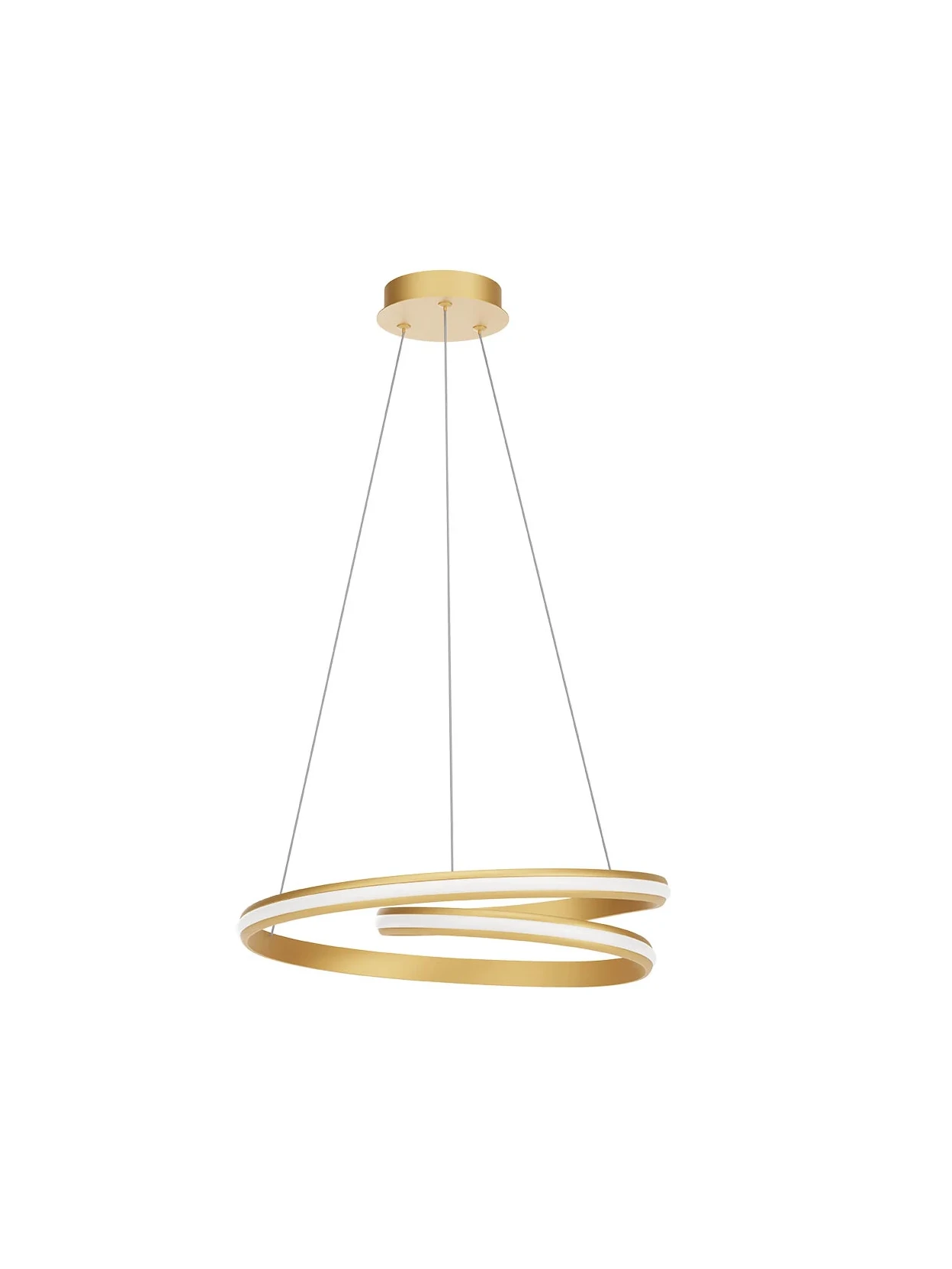 A touch of modern luxury, the Torsion pendant lamp, crafted from metal and matte gold aluminum, illuminates spaces with style and dimmable technology.