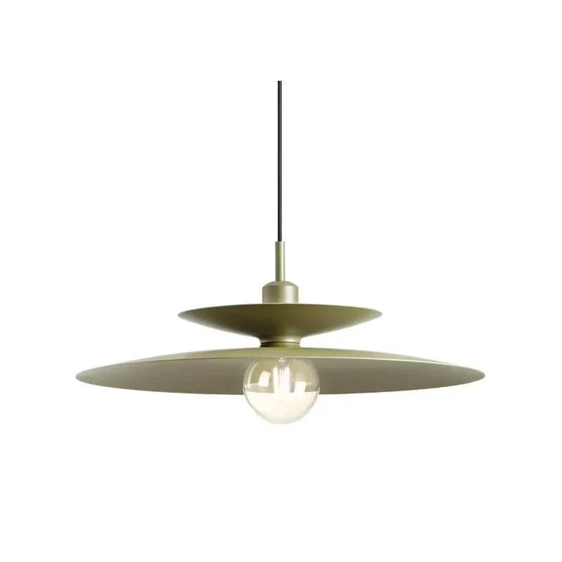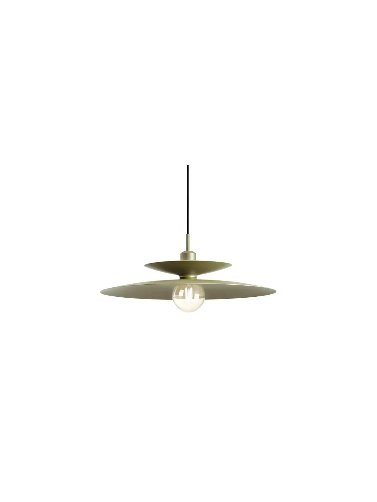 Gunnar by Redo Group is an indoor pendant lamp with a minimalist, modern design and a matte olive green painted aluminum frame. Ideal for residential and commercial spaces, it easily complements a variety of furnishing styles. Compatible with E27 bulbs (max 42W, not included). Power supply voltage: 220–240V, 50/60Hz. IP20, Class II protection rating.