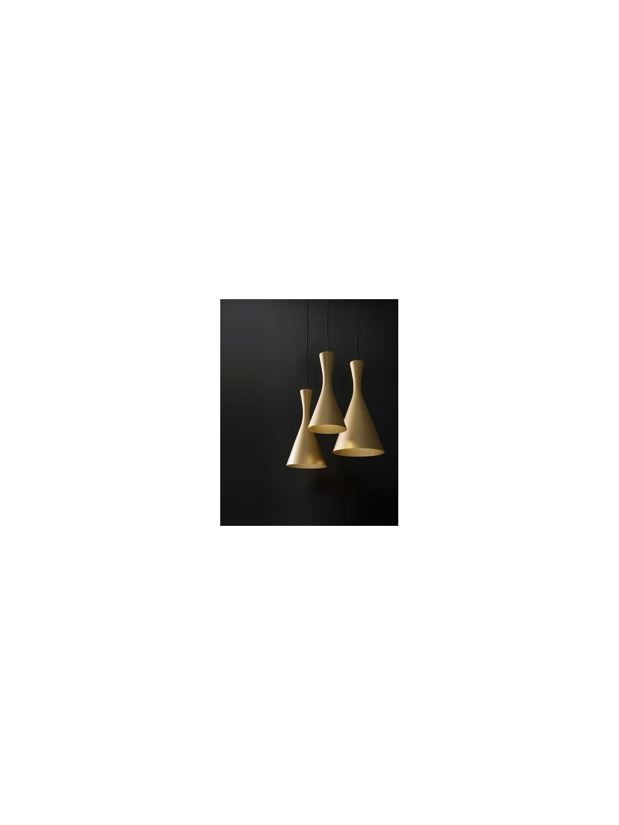 Longuette is the LED pendant lamp by Olev designed to add elegance and personality to the dining room. Crafted from aluminum with a rich gold finish, it features a luminous and sophisticated body, complemented by a ceiling rose painted in the same shade for a coordinated, high-quality effect. Designed to create a welcoming and refined atmosphere, Longuette emits a beam of light directed downward, ideal for illuminating the table with optimal visual comfort. Perfect alone as a dramatic element, it can also be used in combination with multiple pendants or different sizes for dynamic and sophisticated compositions.