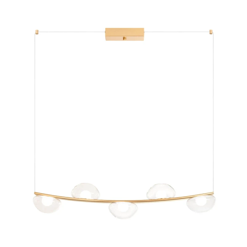 Sinclair by Redo Group is a pendant lamp designed to stylishly illuminate interior spaces, combining refined aesthetics and high lighting performance. The matte gold painted metal frame supports double Pyrex glass diffusers, clear on the outside and satin white on the inside, for a soft and uniform light emission. The 35W version uses 120 0.29W SMD 2835 LEDs, reaching up to 3171 lm with a CRI of 93, while the 42.7W version with 168 0.25W SMD 2835 LEDs offers up to 4587 lm, both dimmable via TRIAC. Sinclair combines elegance and technology, making it ideal for living rooms, dining rooms, and designer spaces requiring warm, enveloping, and adjustable light.