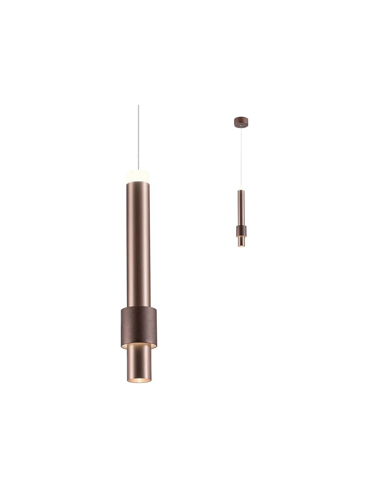 The Tycon pendant lamp is a refined lighting solution designed to create the perfect balance between contemporary aesthetics and luminous quality. The brown anodized aluminum and metal frame, enhanced by a matching decorative ring, conveys an elegant and understated character, ideal for modern environments such as living rooms, kitchens, dining rooms, and professional spaces. The satin acrylic diffuser softens the light and allows for both direct and indirect emission, creating a more welcoming and visually harmonious environment. Integrated LED technology combines a 5W COB module with SMD LEDs, offering a total power of 6W and a high-quality 3000K warm light, with a CRI of 90 and a precise 36° optical beam. The pendant lamp guarantees reliable luminous efficiency, a long lifespan, and true-to-life color rendering, making it an ideal choice for those seeking an elegant, modern, and high-performance lamp from Redo Group.