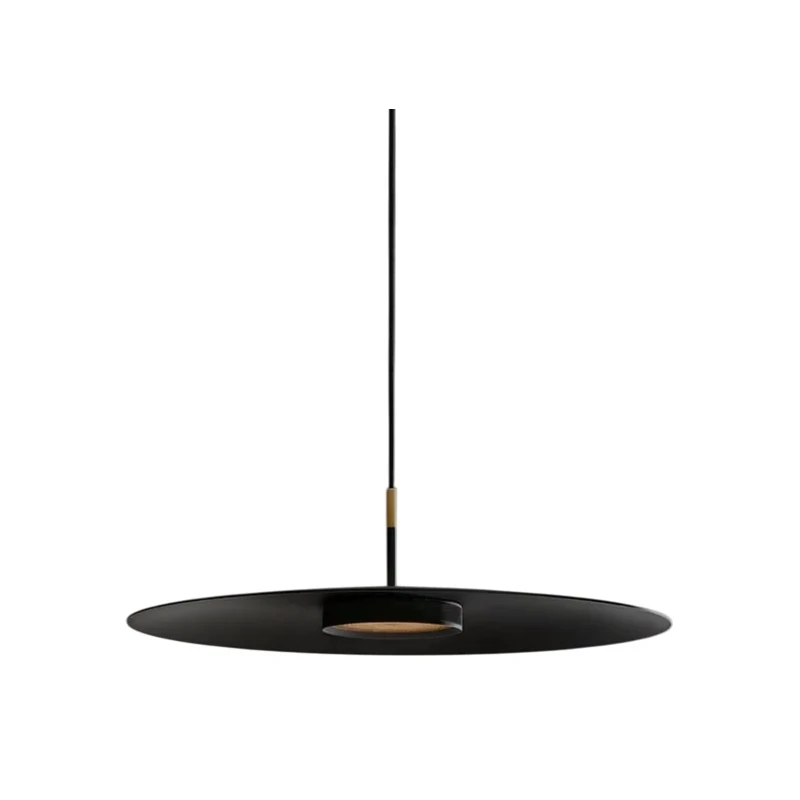 Overfly Plus is the ideal pendant lamp for restaurants, dining tables, and modern spaces. The downward beam of light is enhanced by the anti-glare honeycomb filter integrated into the light source. The iconic design, with a thin, slightly concave plate, recalls the shape of a UFO, while the crisscrossing knurled incisions along the perimeter of the lower disk create a refined play of light, adding a touch of elegance and personality.
