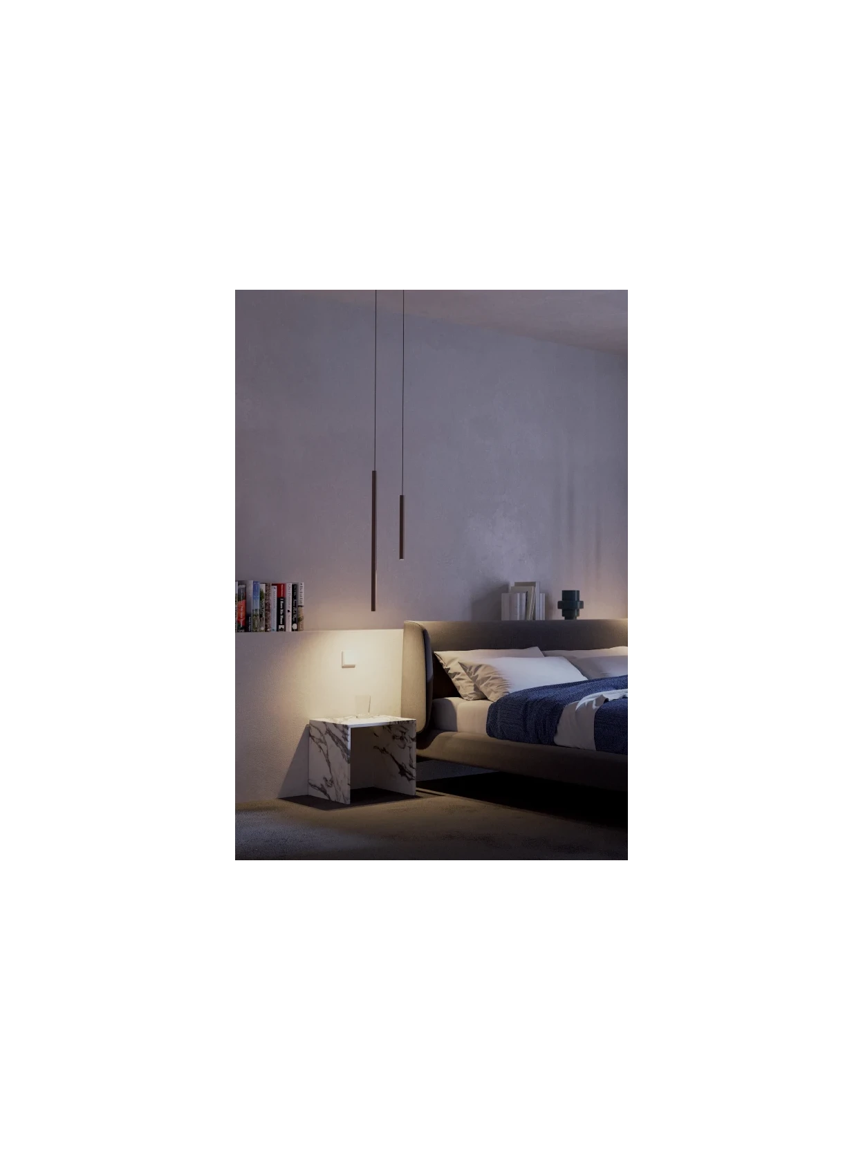 Kanji by Redo Group is a pendant lamp with a matt gold-colored extruded aluminum frame and a transparent polycarbonate diffuser for a clean, directional light. Equipped with a 6.2W COB LED, it guarantees efficient, high-quality lighting. Available in a color temperature of 3000K or 2700K, it ensures high color rendering (CRI 90) and a warm light, ideal for residential or commercial spaces. It operates at 220–240V, 50/60 Hz, and has an IP20 rating. A compact, elegant, and modern solution for tables, counters, or reading areas.
