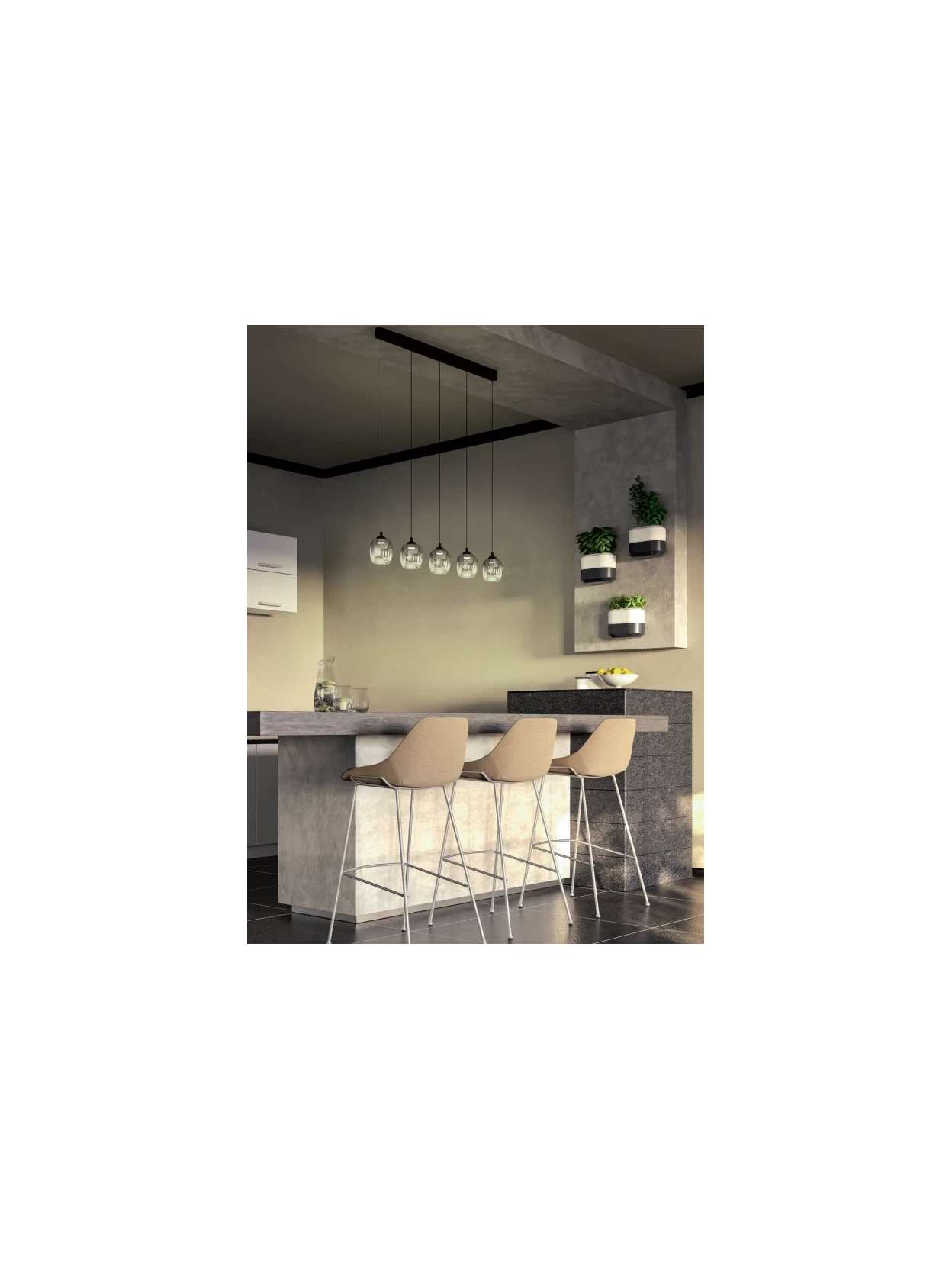 Khadi by Redo Group is a linear pendant lamp with an elegant and contemporary style, ideal for illuminating dining tables, kitchen islands and modern spaces. The matte black painted metal frame pairs with smoked glass diffusers, creating a warm and sophisticated lighting effect. Equipped with SMD 3030 LEDs (50 x 0.52W) with a total power of 26W, it emits warm 3000K light with a luminous flux of 2955 lm (1511 lm effective system). The 3-Step Dimming control allows you to adjust the light intensity using a traditional switch. Color rendering index CRI 90, IP20 protection, insulation class II, 220–240V power supply.