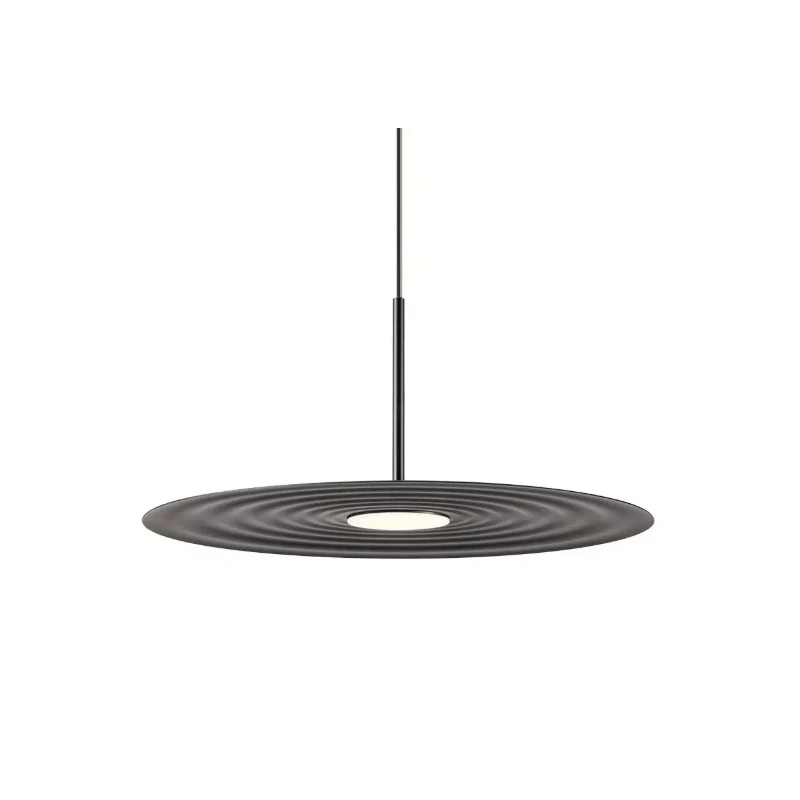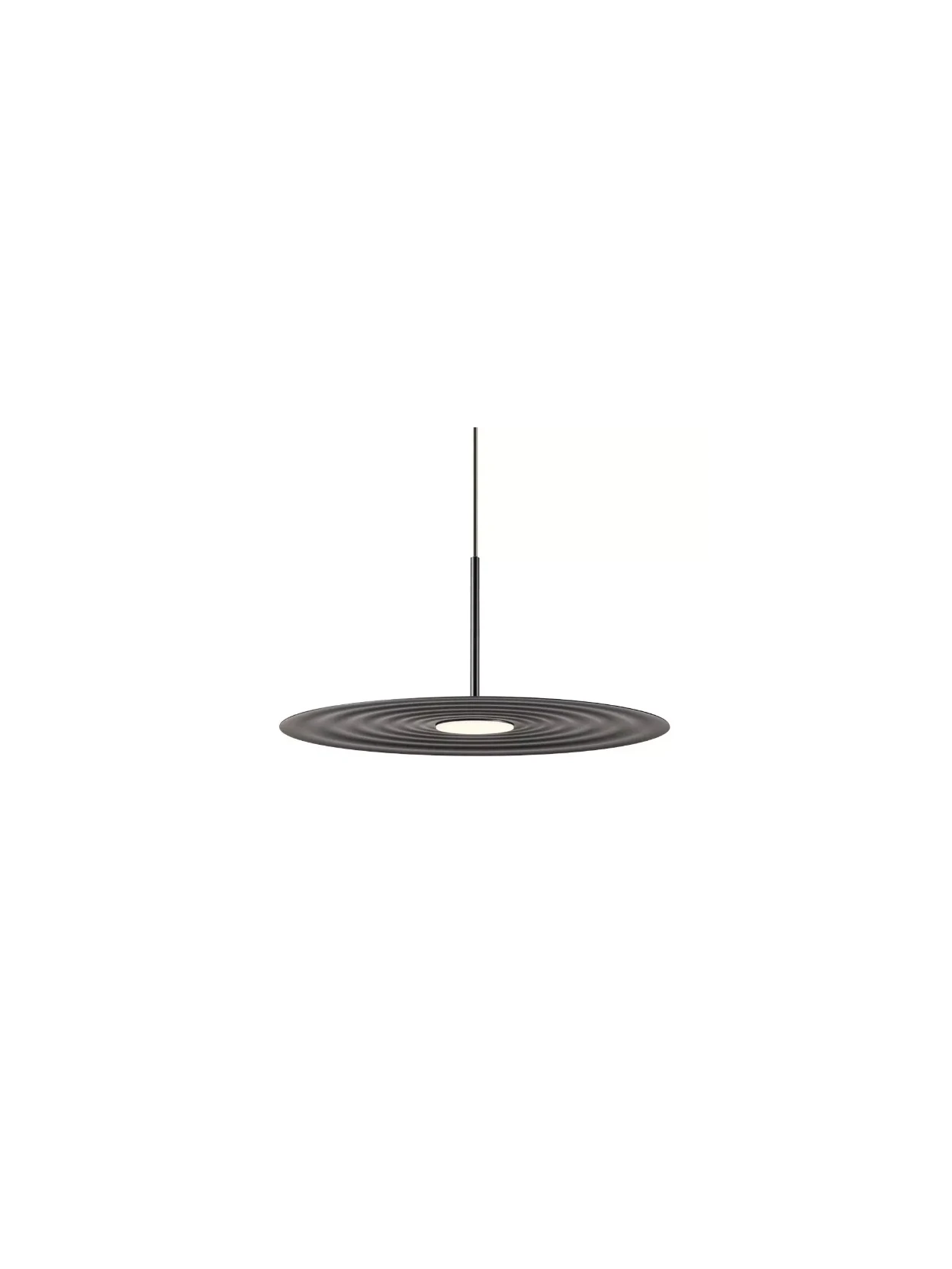 Lake by Redo Group is an indoor pendant lamp with a minimalist design, equipped with high-efficiency Samsung SMD LEDs. Its aluminum and metal frame is painted in a matte black, and its opal acrylic diffuser provides a warm, diffused light (3000K). Power: 13W, luminous flux: 1450 lm (LED) / 723 lm (system), CRI 90. Protection class II, IP20, non-dimmable.