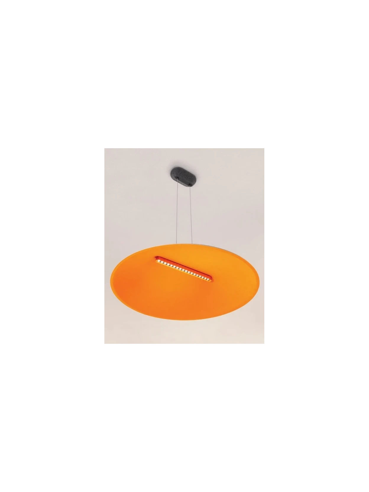 Indoor pendant lamp with SMD LED, aluminum and painted metal structure. The sound-absorbing felt diffuser, made with recycled materials, improves acoustic comfort and adds a touch of elegance to the environment. Available in different color combinations.