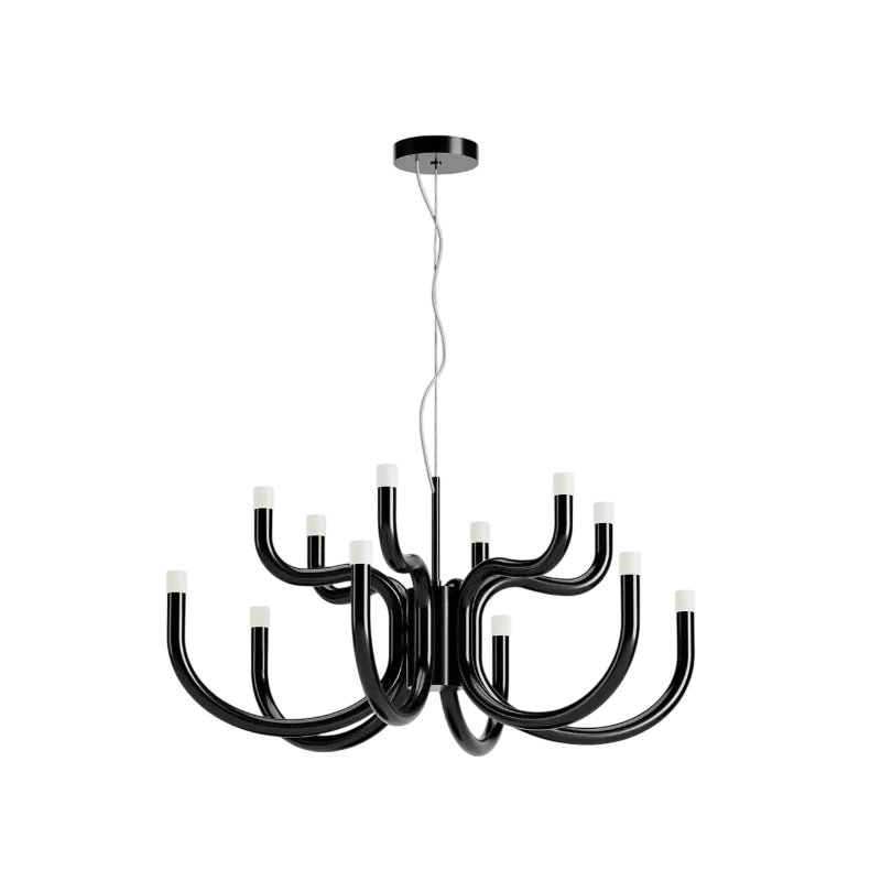 Luxor by Redo Group is an elegant pendant lamp; a fusion of contemporary design and cutting-edge technology. The structure, made of metal and aluminum painted in glossy black, features fluid, sinuous lines that recall the shape of a classic candelabra reinterpreted in a minimalist style. The satin-finish acrylic diffusers ensure even light distribution, offering a warm and welcoming glow (3000K). Equipped with high-efficiency SMD LEDs, it is available in three power levels to suit spaces of different sizes, all dimmable via a TRIAC system for maximum brightness control. With a high CRI (93), it ensures excellent color