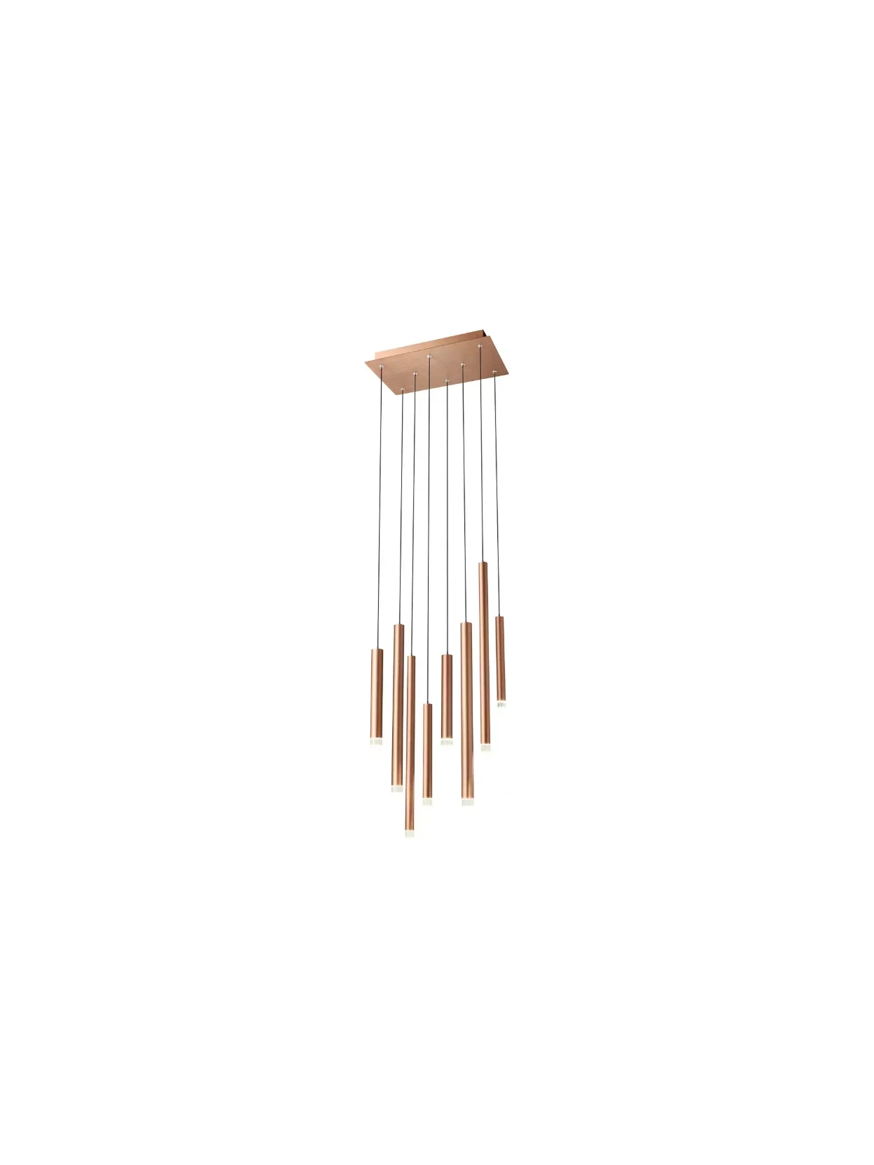 Madison by Redo Group is a multiple pendant lamp distinguished by its minimalist and elegant style. The frame is made of metal and brushed aluminum with a matte copper anodized finish, while the transparent acrylic diffusers enhance the purity of the light, making it ideal for modern and minimalist spaces. It is equipped with a 4W SMD 3030 LED that emits a warm 3000K light. The LED's luminous flux is 450 lumens, with an effective output of 272 lumens at fixture level. The lamp has a CRI of 80. It is not dimmable, operates on a voltage of 220–240V at 50/60Hz, and is certified in protection class I with an IP20 rating.