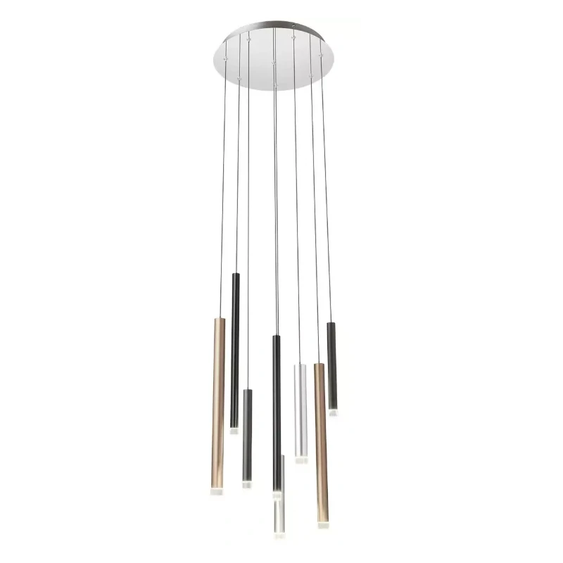 Madison by Redo Group is a pendant lamp that combines elegance and functionality in a contemporary design. Crafted with a silver-painted metal frame, it is embellished with a chrome front base and brushed anodized aluminum tubes in matte copper, matte brown, and black finishes. The clear acrylic diffusers further enhance the modern aesthetic, making it perfect for living rooms, dining areas, or dining areas.