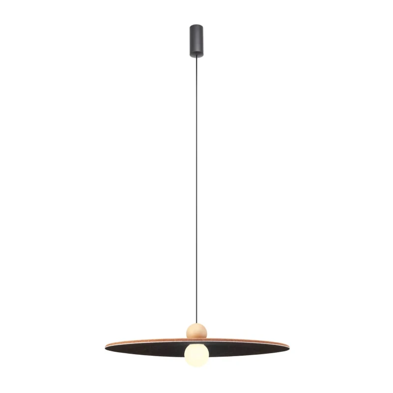 Nuwa by Redo Group is a modern and elegant pendant lamp featuring high-efficiency COB LED technology. The frame is made of matte black painted aluminum with a decorative sphere in matte coffee aluminum. The lampshade, made of sound-absorbing PET felt, features a coffee finish on the outside and black on the inside, designed to improve acoustic comfort. The design is completed by an opal white blown glass diffuser, which ensures a soft, even light. The lamp operates at 220–240V, has excellent color rendering (CRI 90), and is IP20 protected.