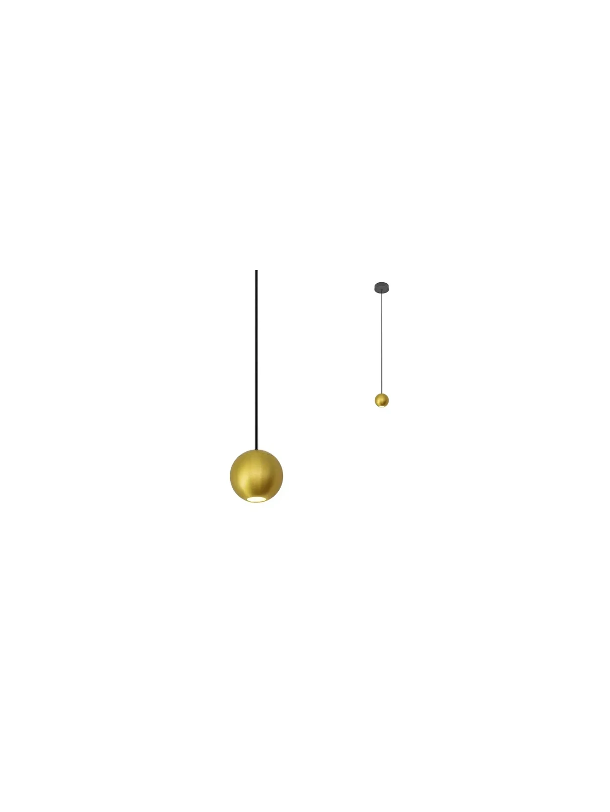 Single pendant lamp with matt black painted aluminium structure and brushed brass aluminium diffuser.