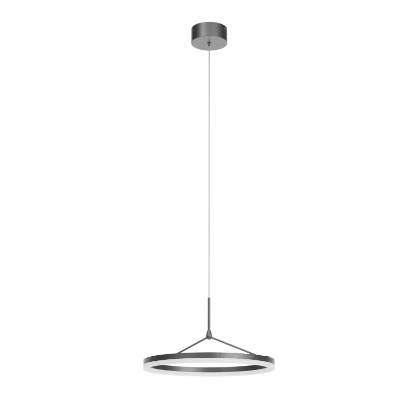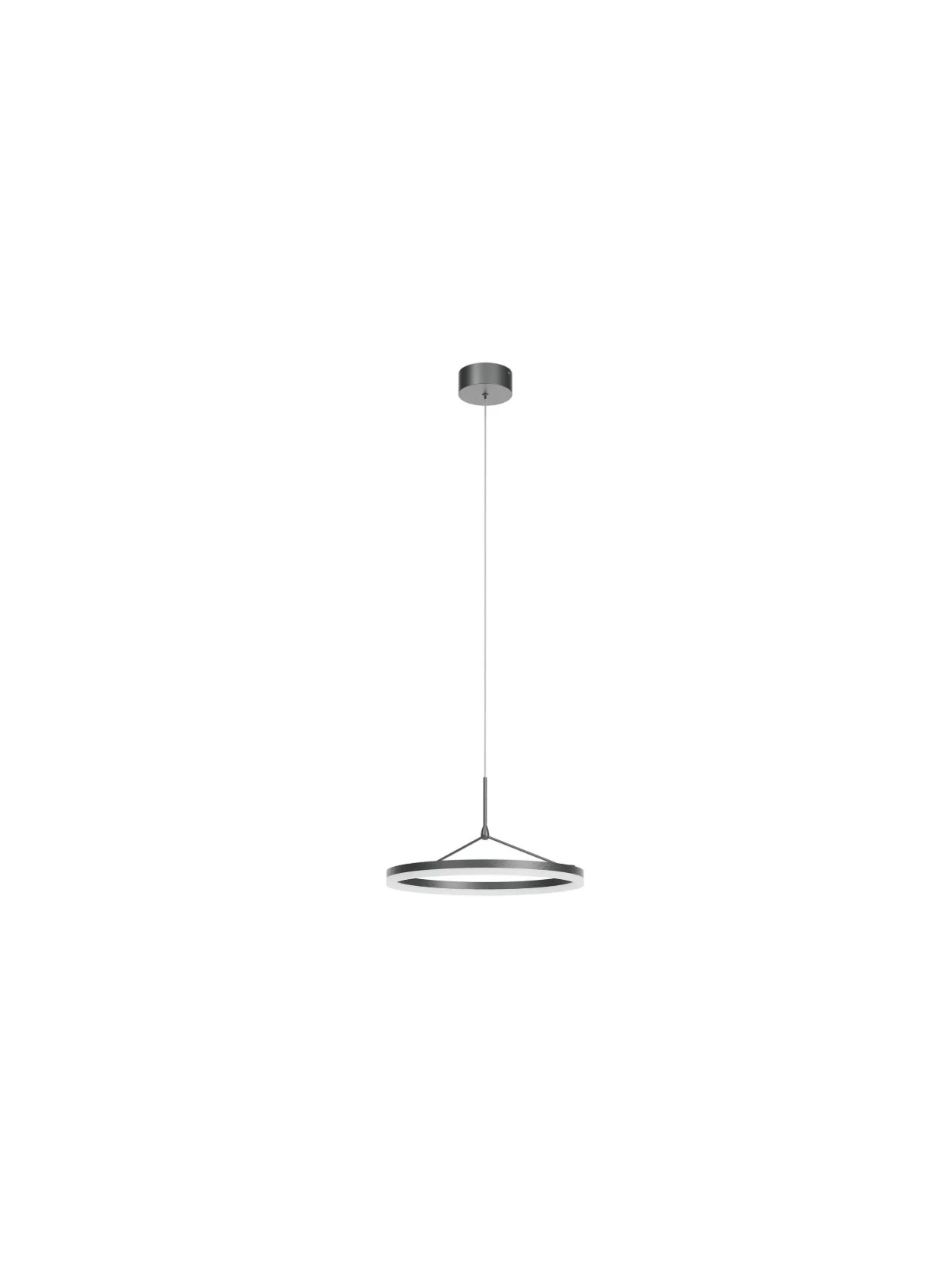 Orbit by Redo Group is a LED pendant lamp with a minimalist, modern design, featuring a matte black painted aluminum and metal frame and a satin acrylic diffuser. Available in various sizes, it is perfect for interiors thanks to its uniform, intense light. Equipped with SMD LEDs, it offers a true light output with a color temperature of 3000K (warm white). Dimmable with TRIAC technology, it has a high color rendering index (CRI 90) and is ideal for living rooms, meeting rooms, or commercial spaces with a clean, sophisticated style.