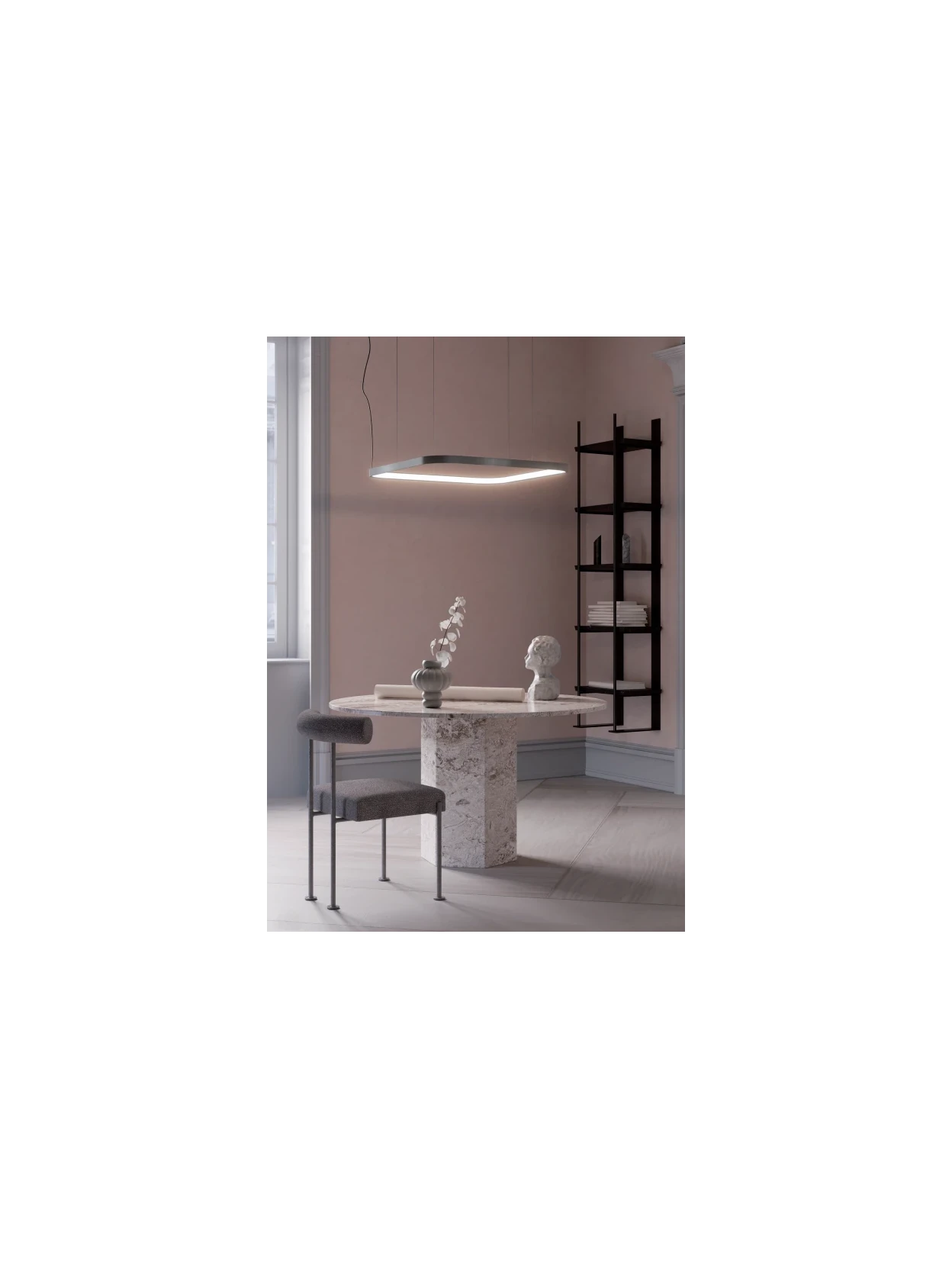 Orion by Redo Group is a pendant lamp equipped with high-efficiency SMD LEDs and offers adjustable light intensity (TRIAC dimmer) and color temperature, ranging from a warm 2700K to a neutral white 4000K. The aluminum and metal body, in foggy nickel, pairs perfectly with the opal white silicone diffuser, for a soft and uniform light emission. Ideal for modern spaces where comfort and design meet.
