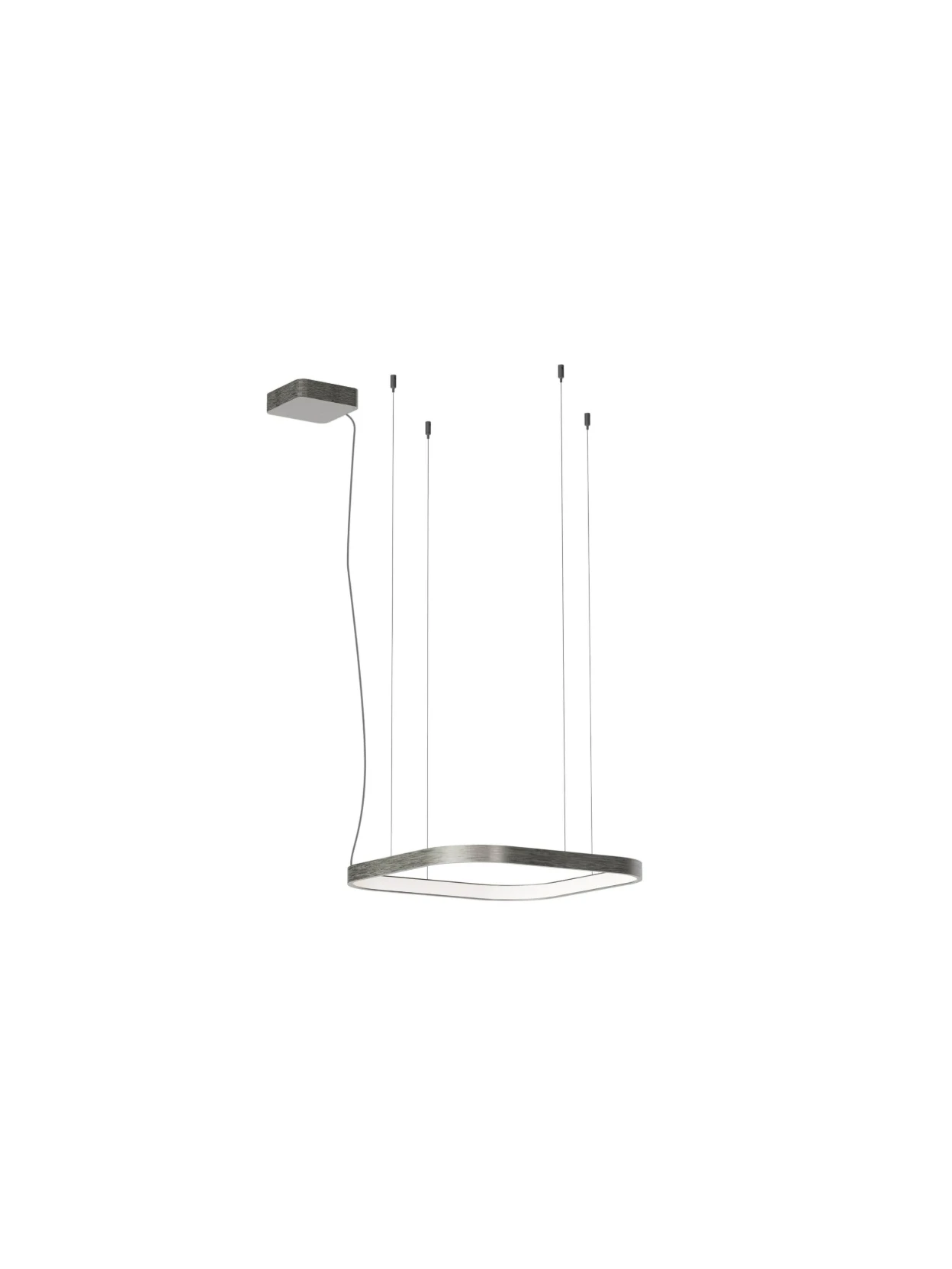 Pendant lamp with dimmable SMD LEDs and adjustable color temperature from warm white to neutral white. Foggy nickel aluminum and metal frame, white opal silicone diffuser.