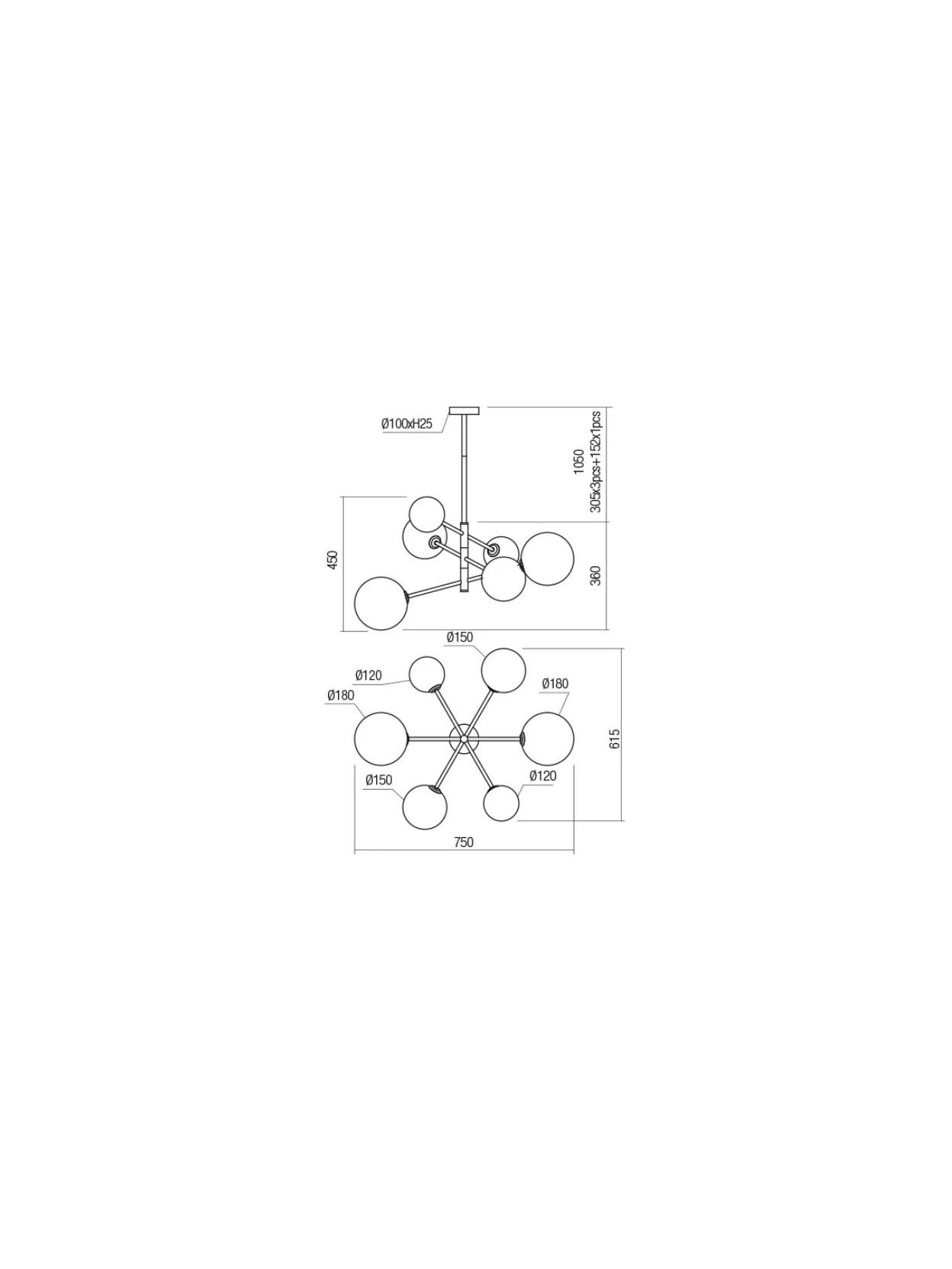 SMALL WITH 6 DIFFUSERS: L 75 x D 61.5 x H 45 cm | G9 6 x max 10W