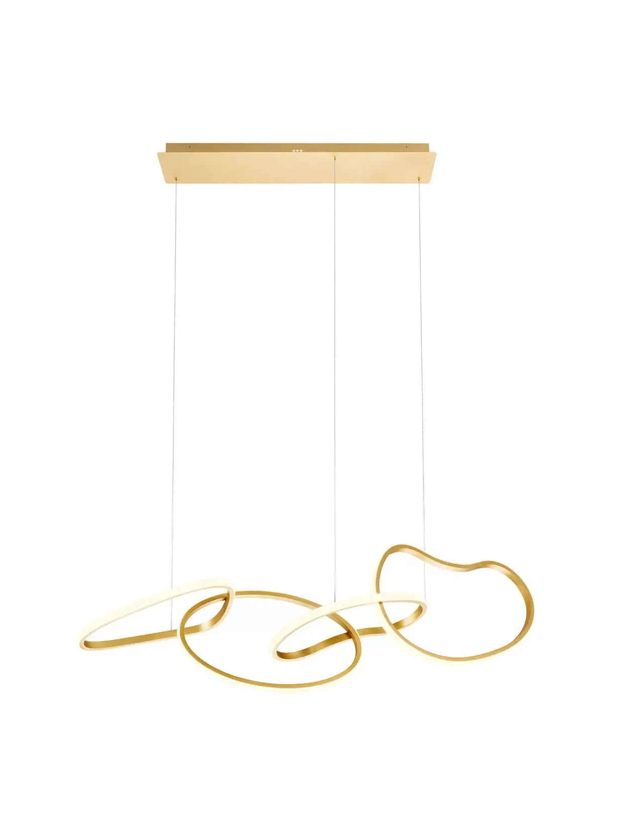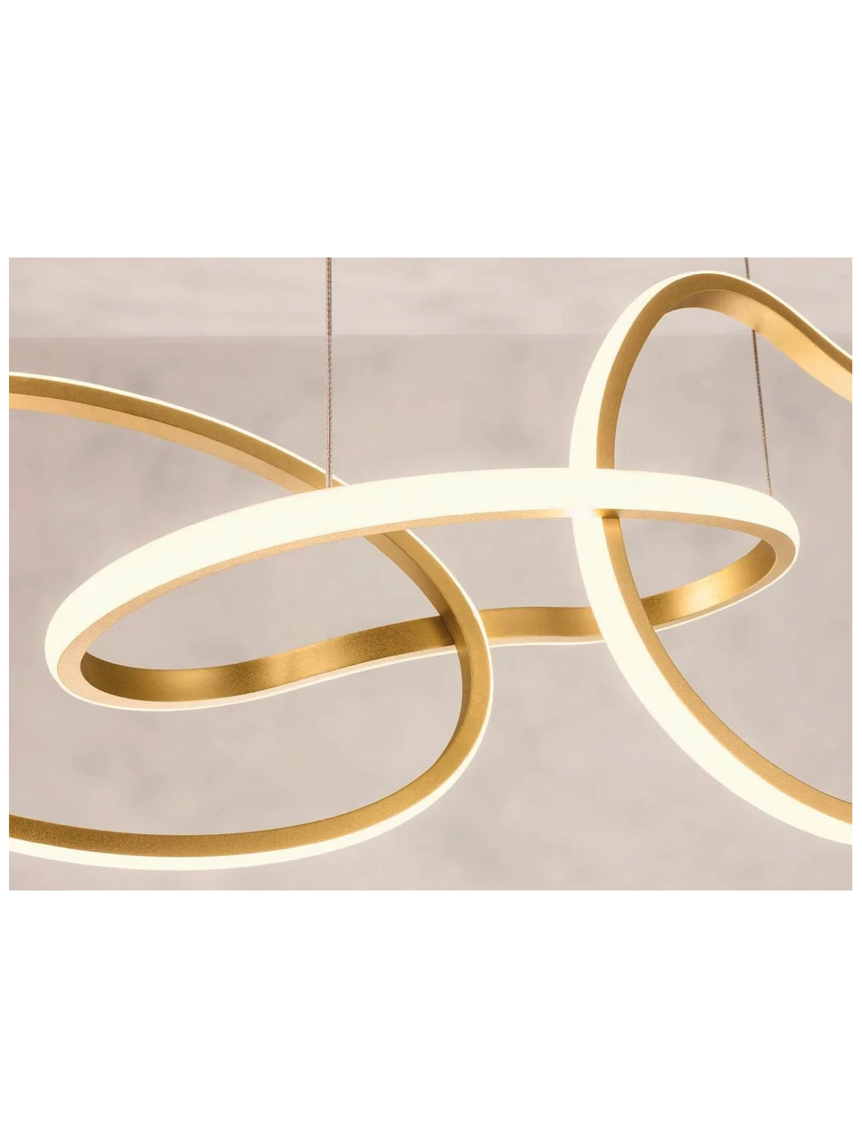 Pendant lamp equipped with 3-step dimmable SMD LED technology and selectable color temperature. Made of metal and aluminum with a matt gold finish.