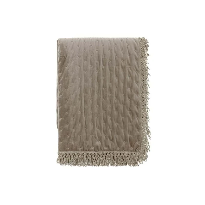 Elegant quilt in 100% polyester velvet, 430 GSM, soft and enveloping. Natural color with side fringes for a sophisticated touch. Perfect for adding style and comfort to your bed.