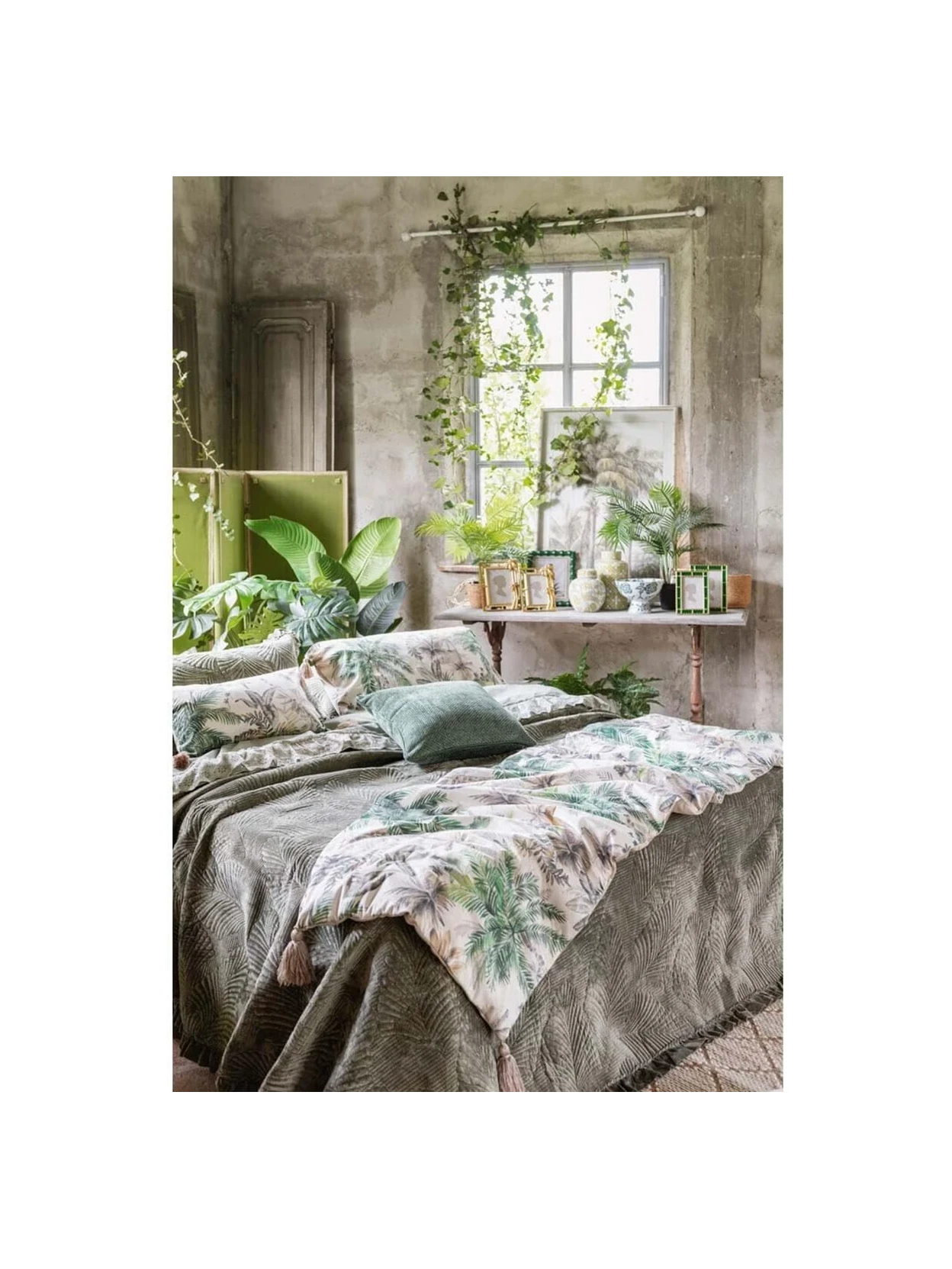 The set comes complete with a fabric bag for practical and organized storage. Measuring a generous 260x260 cm, the Foliage Velvet duvet is ideal for those seeking a blend of aesthetics, comfort, and quality, transforming their bed into a truly welcoming and refined haven.