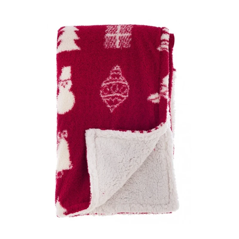 Blanc MariClò - Christmas Print Sherpa Throw - Red