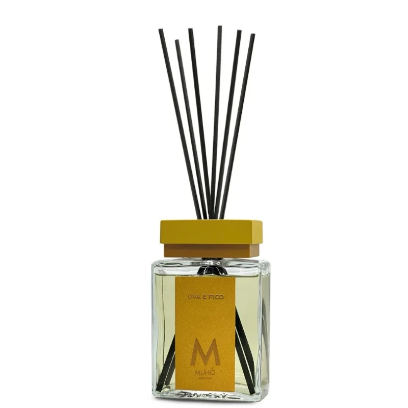 Let yourself be enveloped by a fruity fragrance that celebrates the joy of living with its intense and juicy notes of grape and fig, awakening the senses and bringing an immediate sensation of freshness. This vibrant heart intertwines with delicate floral nuances of rose and orange blossom, adding a touch of elegance and lightness. Sweet notes of apple and pear complete the composition, lending harmony and a sense of contagious positivity. A sunny and enveloping scent, perfect for brightening any space and filling it with positive energy, creating a fresh and joyful atmosphere at any time of day.
