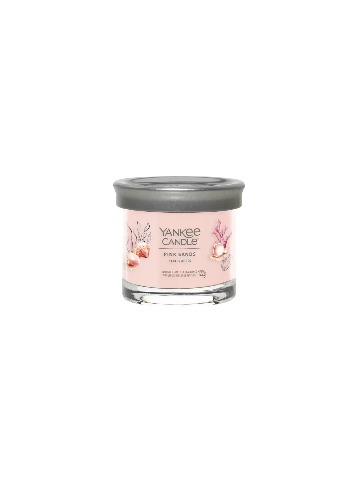 Yankee Candle's Pink Sands is a tumbler candle that transports the senses to a dreamy escape to an exotic island, where the scent of freshness, sweetness, and warmth fills the air. Top notes of vibrant citrus, juicy melon, and sunny berries create a bright and joyful opening, like a sea breeze awakening the senses. At the heart, a refined touch of osmanthus adds floral delicacy and a soothing elegance. The base envelops with the warm sweetness of spicy vanilla, soft musk, and subtle woody nuances, leaving a relaxing and sensual trail. Pink Sands is a floral fragrance that evokes the pleasures of a tropical vacation, perfect for those who want to bring an atmosphere of relaxation, sunshine, and freedom into their home.