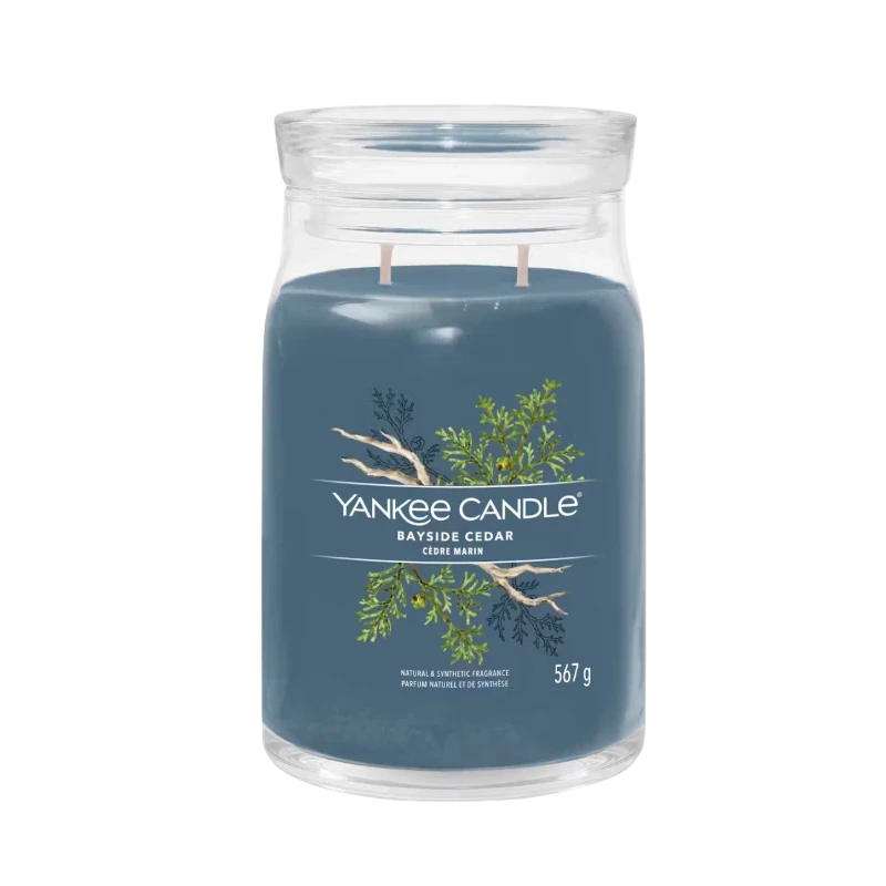 Yankee Candle's Bayside Cedar is a large jar candle where the crisp notes of grapefruit and mandarin blossom blend with the warm delicacy of amber, creating a rejuvenating and enveloping fragrance. This is a fresh and clean fragrance, designed to bring a sense of renewed energy and tranquility to your spaces.