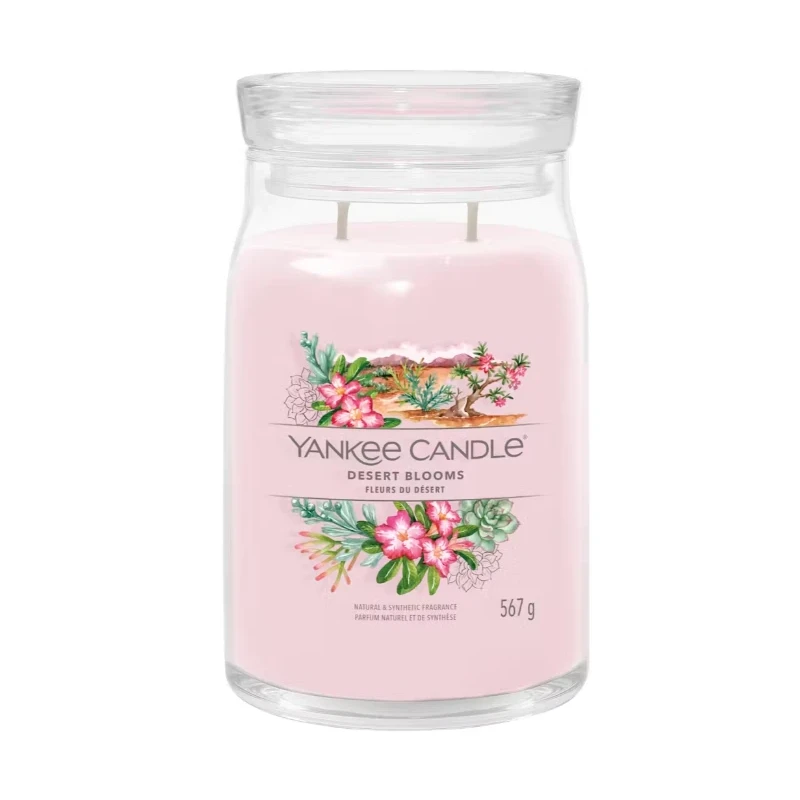 Yankee Candle's Desert Blooms is a large jar candle that evokes the unexpected beauty of the desert in bloom: a refined and captivating fragrance that captures the essence of wild landscapes. Crisp notes of bergamot and saguaro cactus open the composition with a luminous freshness, like a breeze wafting across the warm sand at sunset. The floral heart combines the delicacy of rose petals with dried sage, for a perfect balance of sweetness and herbaceous notes. A base of time-honed woods and light musk adds depth and warmth, evoking the tranquility and natural elegance of a pristine landscape. An enveloping olfactory experience, inspired by the silent strength and hidden grace of the desert. Perfect for those who love natural, fresh scents rich in personality.