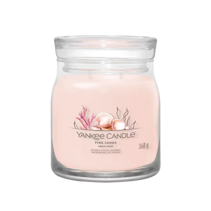 Yankee Candle's Pink Sands is a medium jar candle that transports the senses to a dreamy escape to an exotic island, where the scent of freshness, sweetness, and warmth fills the air. Top notes of vibrant citrus, juicy melon, and sunny berries create a bright and joyful opening, like a sea breeze awakening the senses. At the heart, a refined touch of osmanthus adds floral delicacy and a soothing elegance. The base envelops with the warm sweetness of spicy vanilla, soft musk, and subtle woody nuances, leaving a relaxing and sensual trail. Pink Sands is a floral fragrance that evokes the pleasures of a tropical vacation, perfect for those who want to bring an atmosphere of relaxation, sun, and freedom into their home.