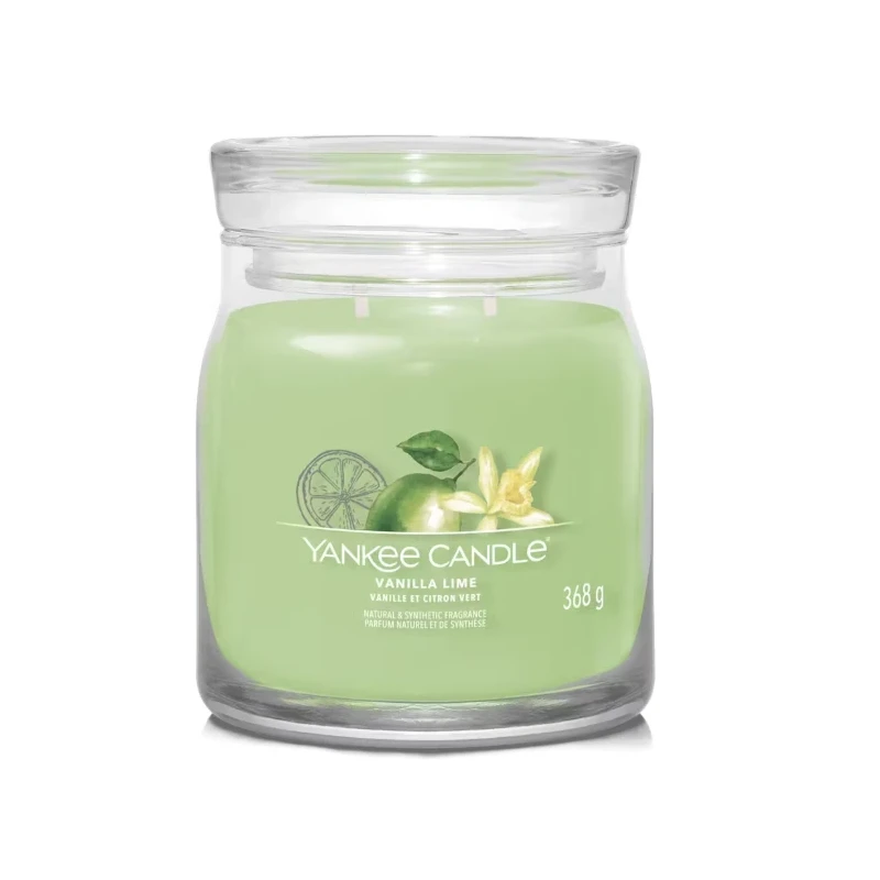 Yankee Candle's Vanilla Lime is a pleasant and rejuvenating medium jar candle. A burst of citrus freshness opens the fragrance with crisp notes of kaffir lime and lemon zest, like a light breeze awakening the senses. Shortly after, a delicious heart of warm sugar and cocoa envelops the room with sweetness and warmth, reminiscent of a kitchen filled with inviting aromas. In the base, creamy vanilla and velvety tonka bean blend in a soft and lingering embrace, leaving a comforting and sensual trail in the air. A sweet and spicy fragrance, perfect for those seeking a balance between energy and pampering, freshness and softness.