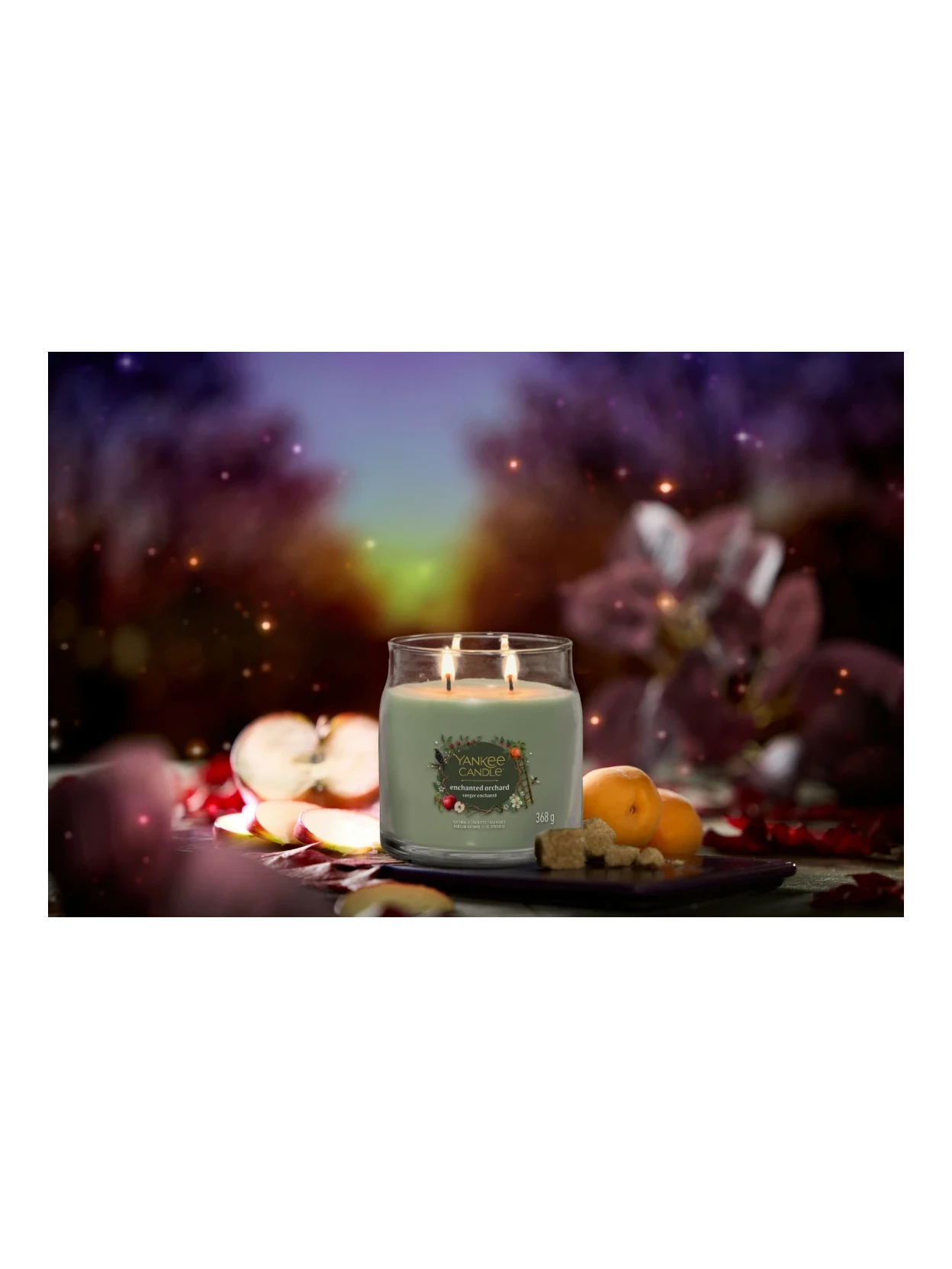 Discover Enchanted Orchard, the fruity candle that transports you to an enchanted orchard. An enveloping blend of caramelized apples, brown sugar, apricots, and spicy notes to experience all the magic of autumn.