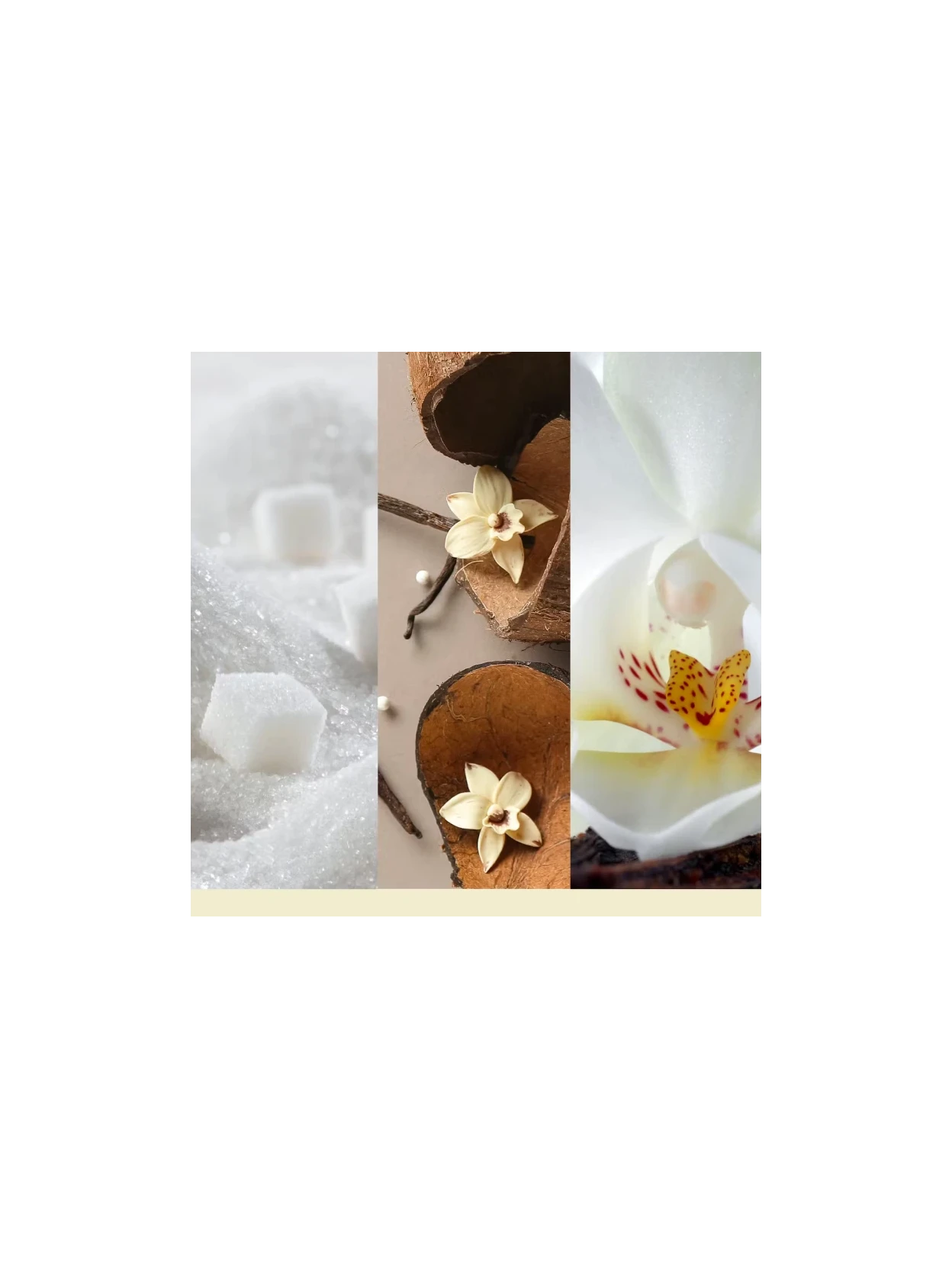 Imagine being enveloped in soft, silently falling snowflakes, while the warmth of a cozy home embraces you with an intimate and serene atmosphere. Vanilla Flurries captures all the magic of this moment, where the freshness of winter blends with the reassuring sweetness of enveloping, soft notes. The fragrance opens with a burst of juicy peach, creamy coconut, and sugared vanilla, creating a sensation of warmth and comfort, like the first breath of fresh air while sliding on the snow. In the heart, sugar crystals and elegant iris intertwine with the sweetness of amber, like light playing on snow. Finally, the base of vetiver, oakmoss, and a hint of leather add a luxurious depth, like the warm embrace of a cashmere sweater and the crackling of a roaring fire.