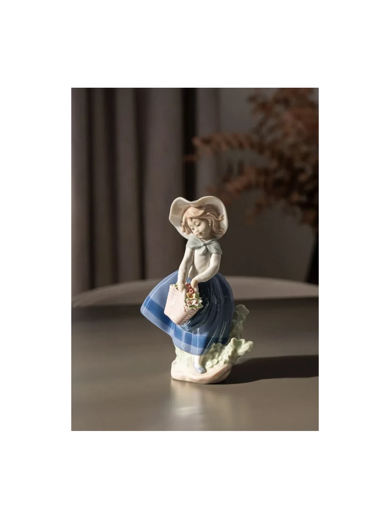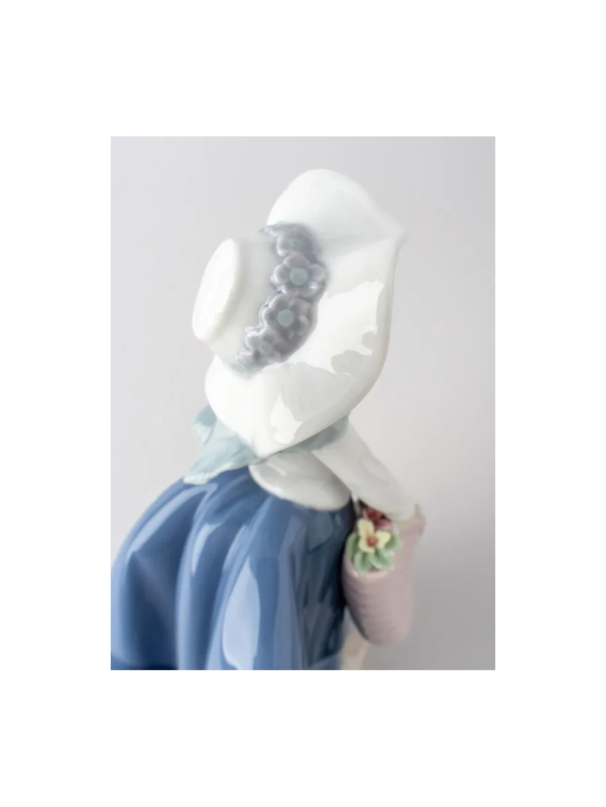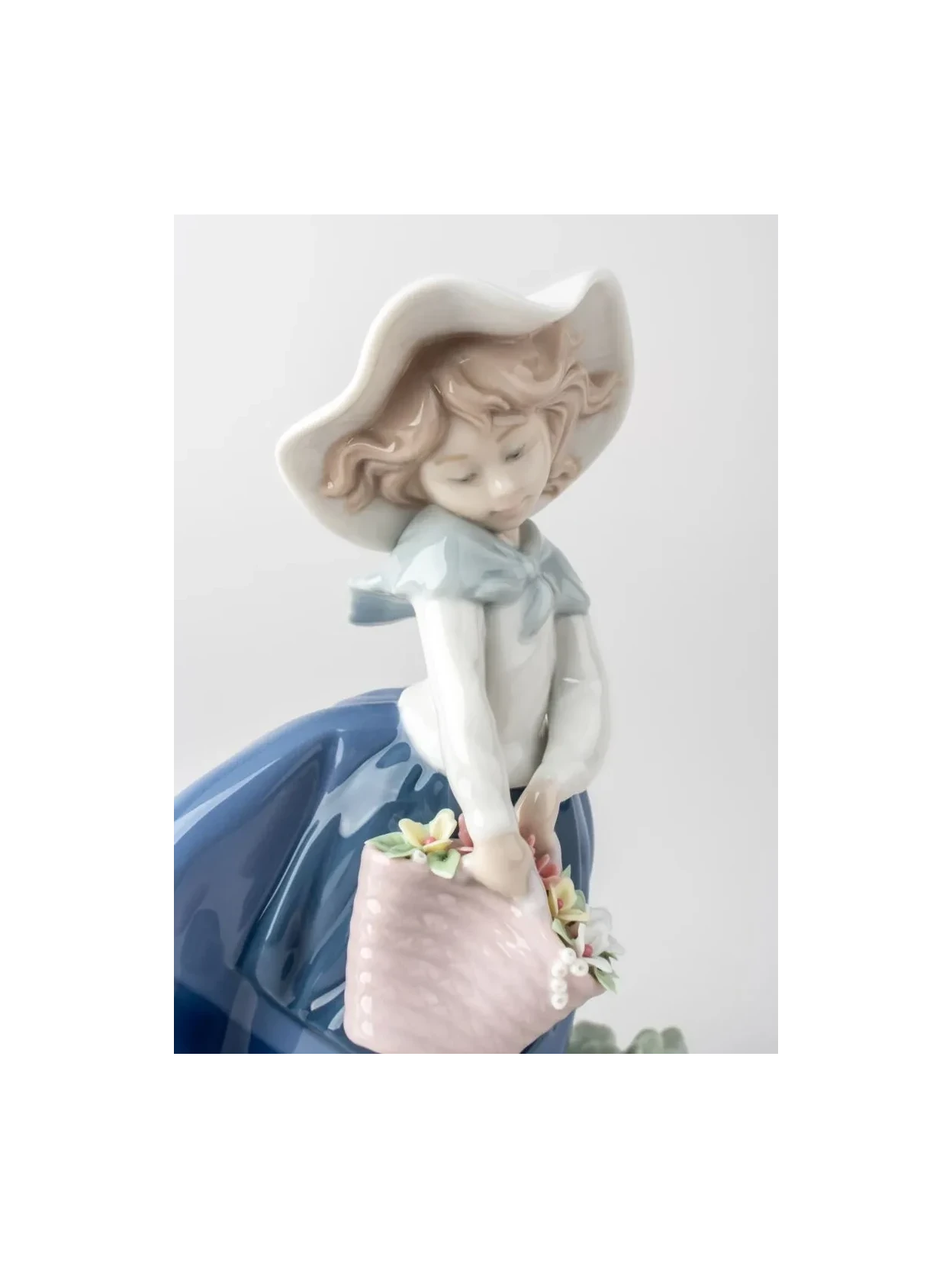 Girl with Bag Sculpture in glossy porcelain by Lladró: a timeless classic that celebrates the grace and delicacy of childhood.