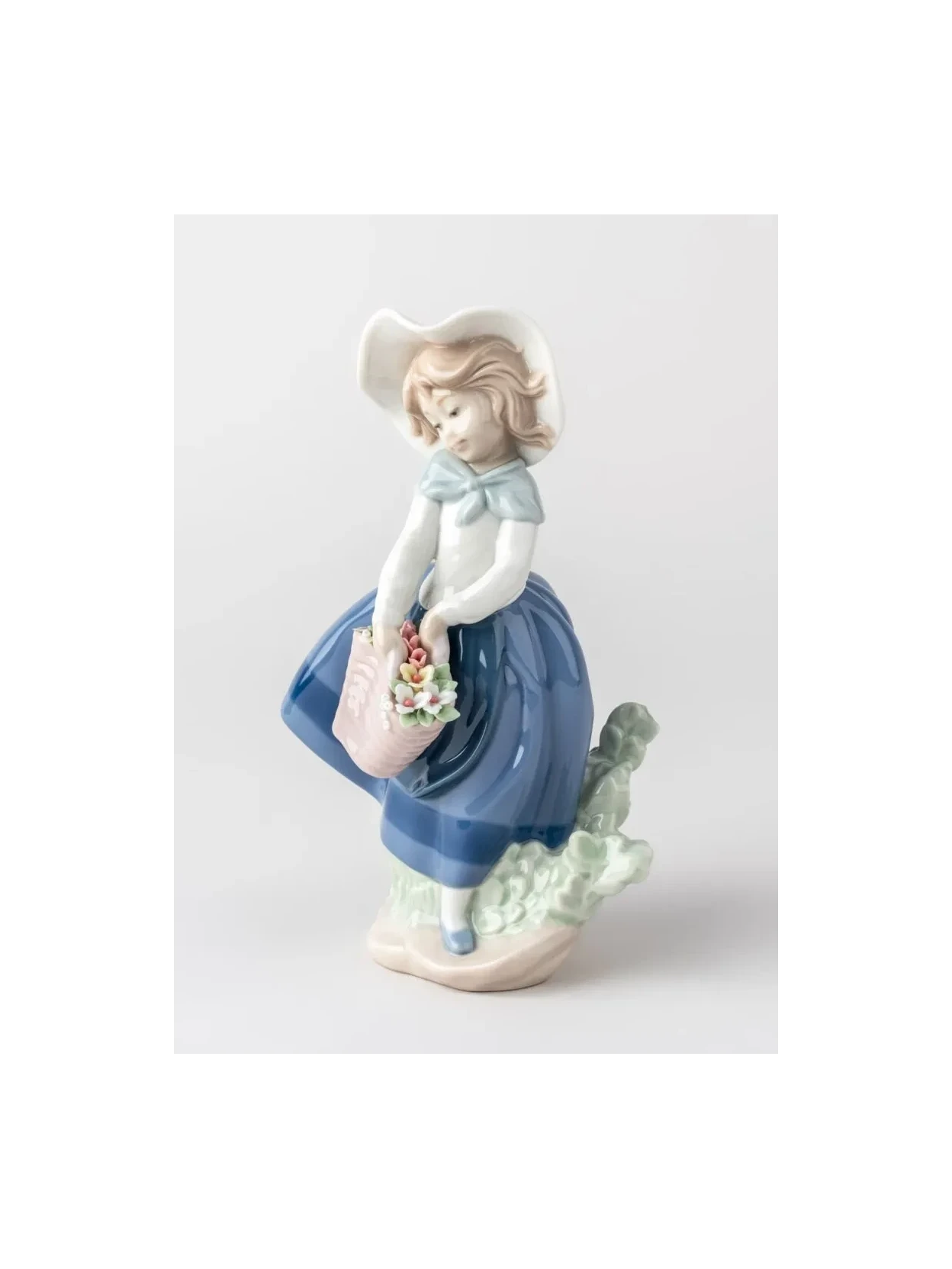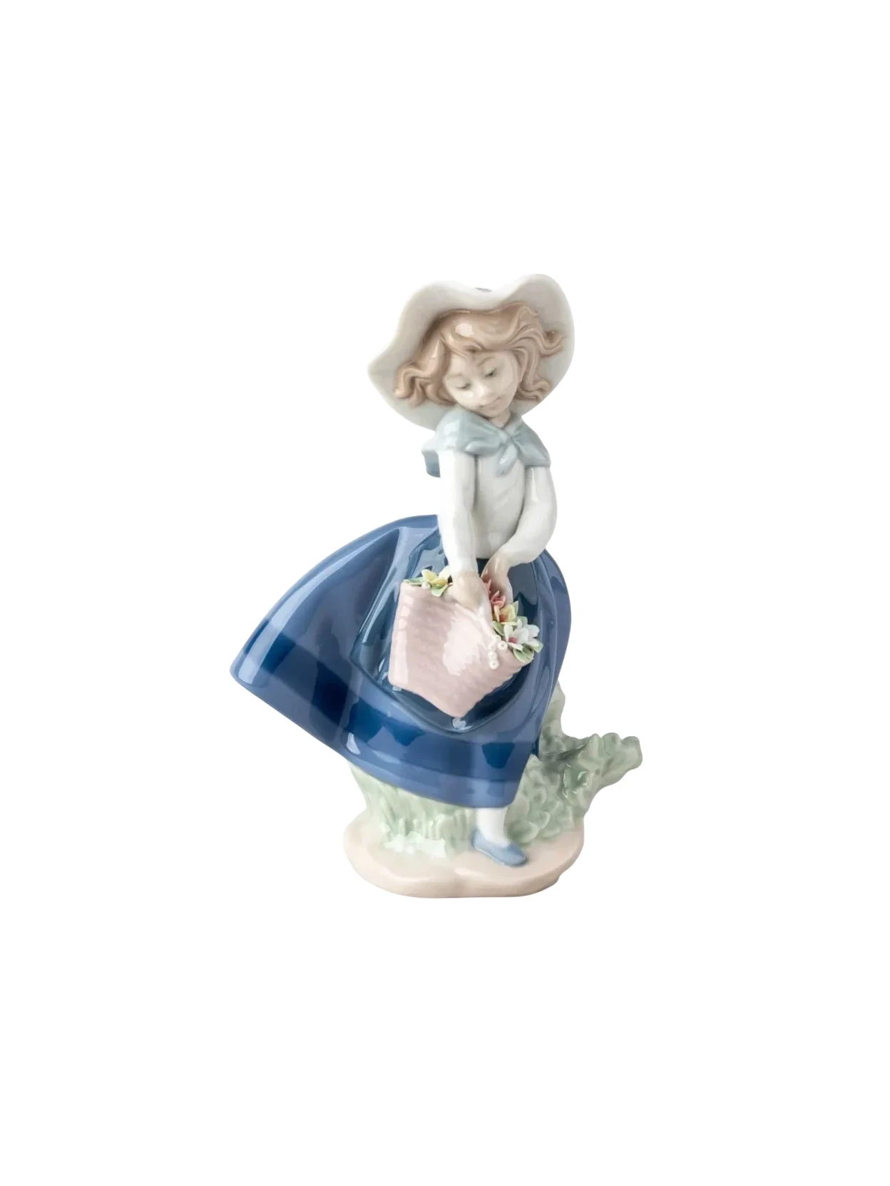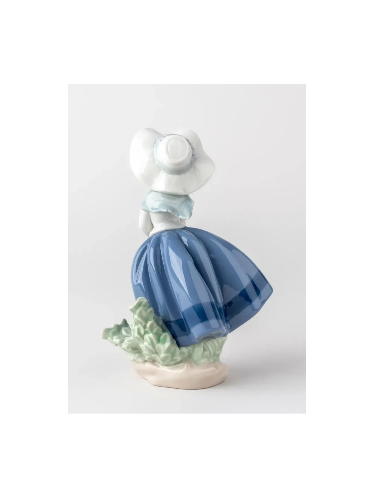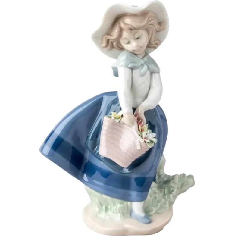 Girl with Bag Sculpture in glossy porcelain by Lladró: a timeless classic that celebrates the grace and delicacy of childhood.