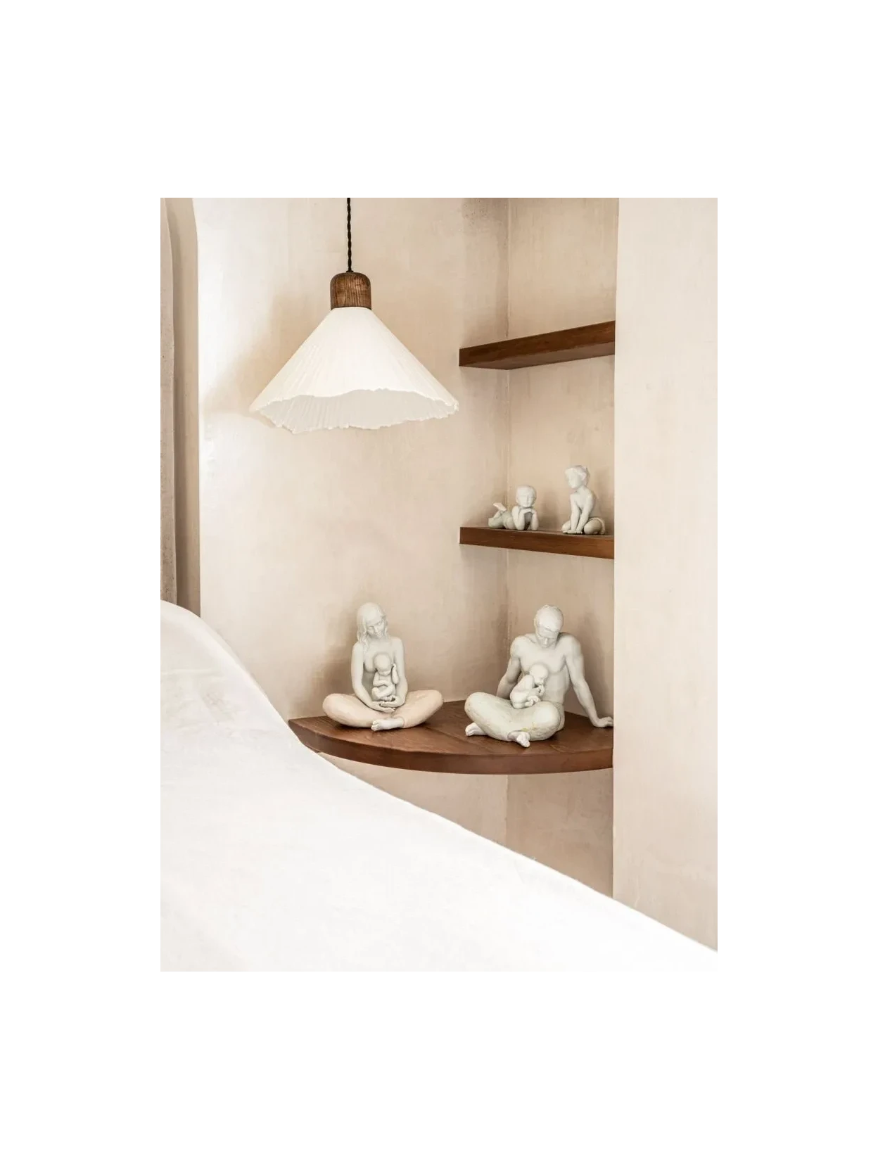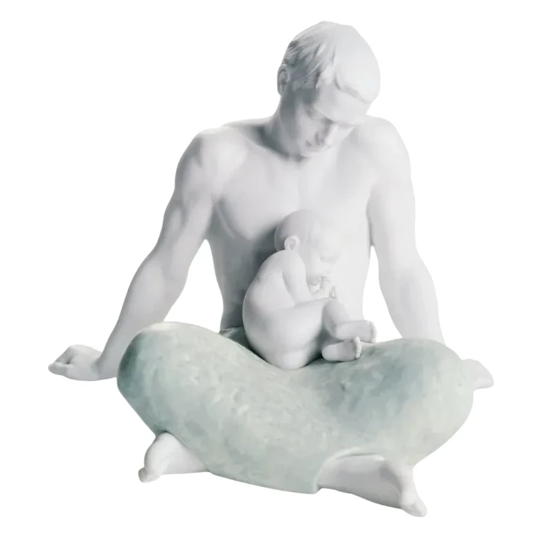 Lladró's sculpture "The Father" delicately and authentically represents the bond between parent and child. Crafted from matte white porcelain and hand-molded in the Lladró workshops in Spain, this work by Ernest Massuet depicts a father sitting cross-legged with his child resting on his lap. The purity of the porcelain, combined with the pastel tones of the garment, gives the scene a sober and contemporary beauty, evoking the strength and sweetness of paternal love. Part of a collection dedicated to family and emotional bonds, this sculpture is perfect for gifting, collecting, or using as an elegant home decor accessory.