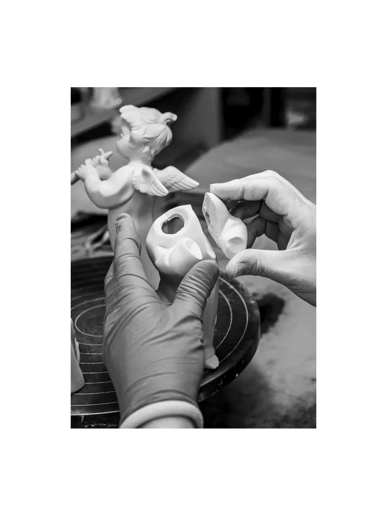 Lladró's sculpture "Little Angel with Flute" captures the magic and lightness of heavenly music. Crafted from glossy porcelain and hand-molded by Fulgencio García, it depicts a little angel playing the flute, conveying a sense of serenity and purity. Despite the simplicity of the scene, the figure exudes grace, expressiveness, and harmony, hallmarks of classic Lladró creations. Perfect for collecting, giving as a gift, or displaying as a refined decorative piece, this sculpture celebrates the timeless beauty of angels and music.