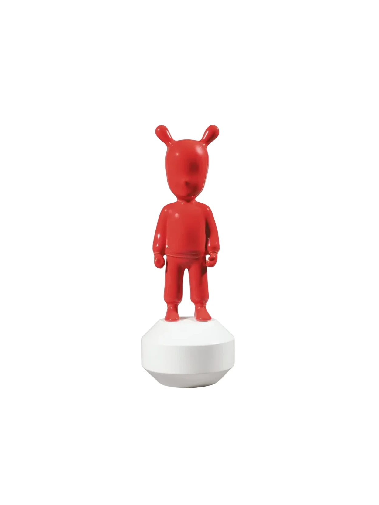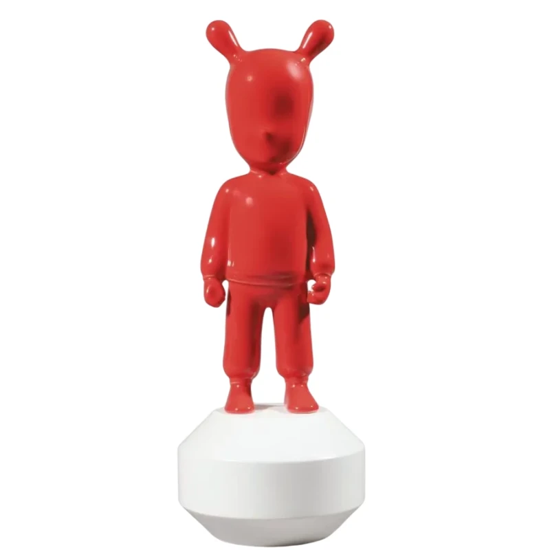 The Guest: Jaime Hayon's iconic character is dressed in bright red against a white base in this glossy porcelain sculpture. A statement piece perfect for contemporary decor and art collections.