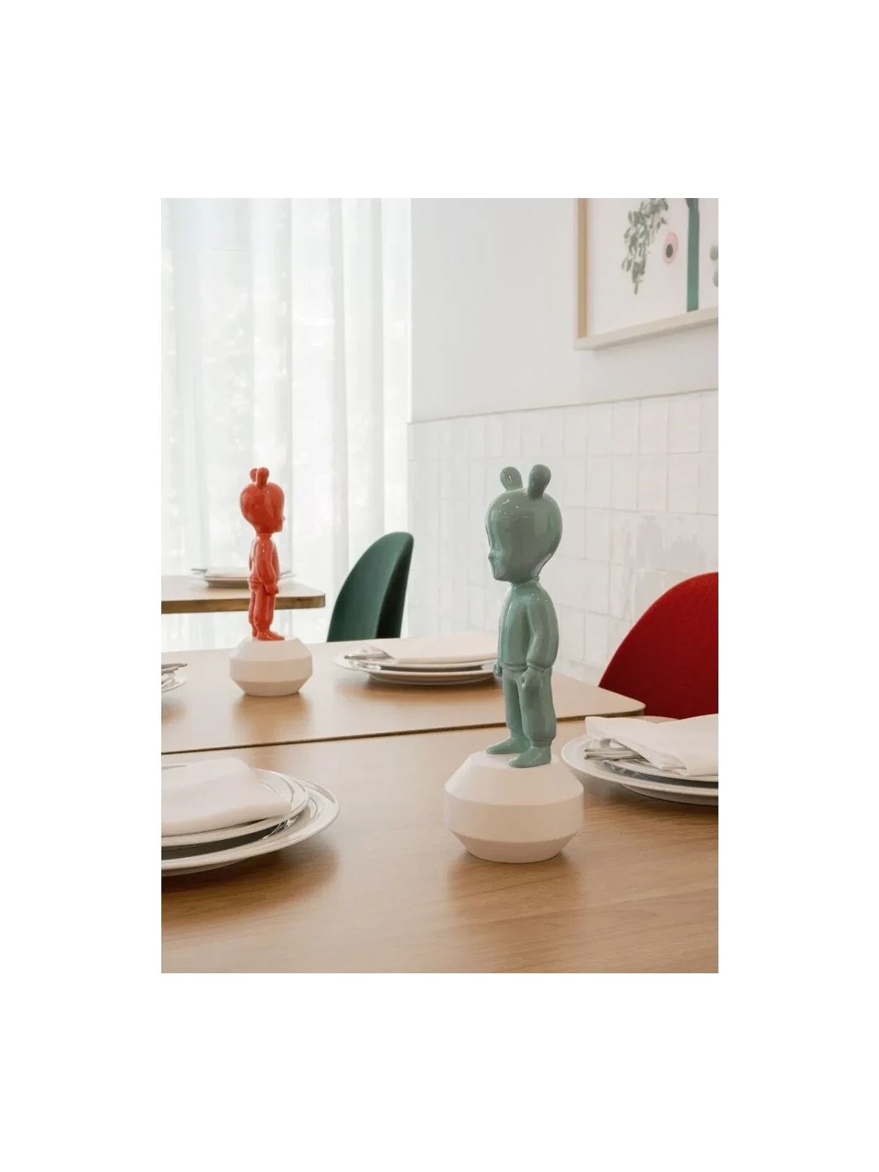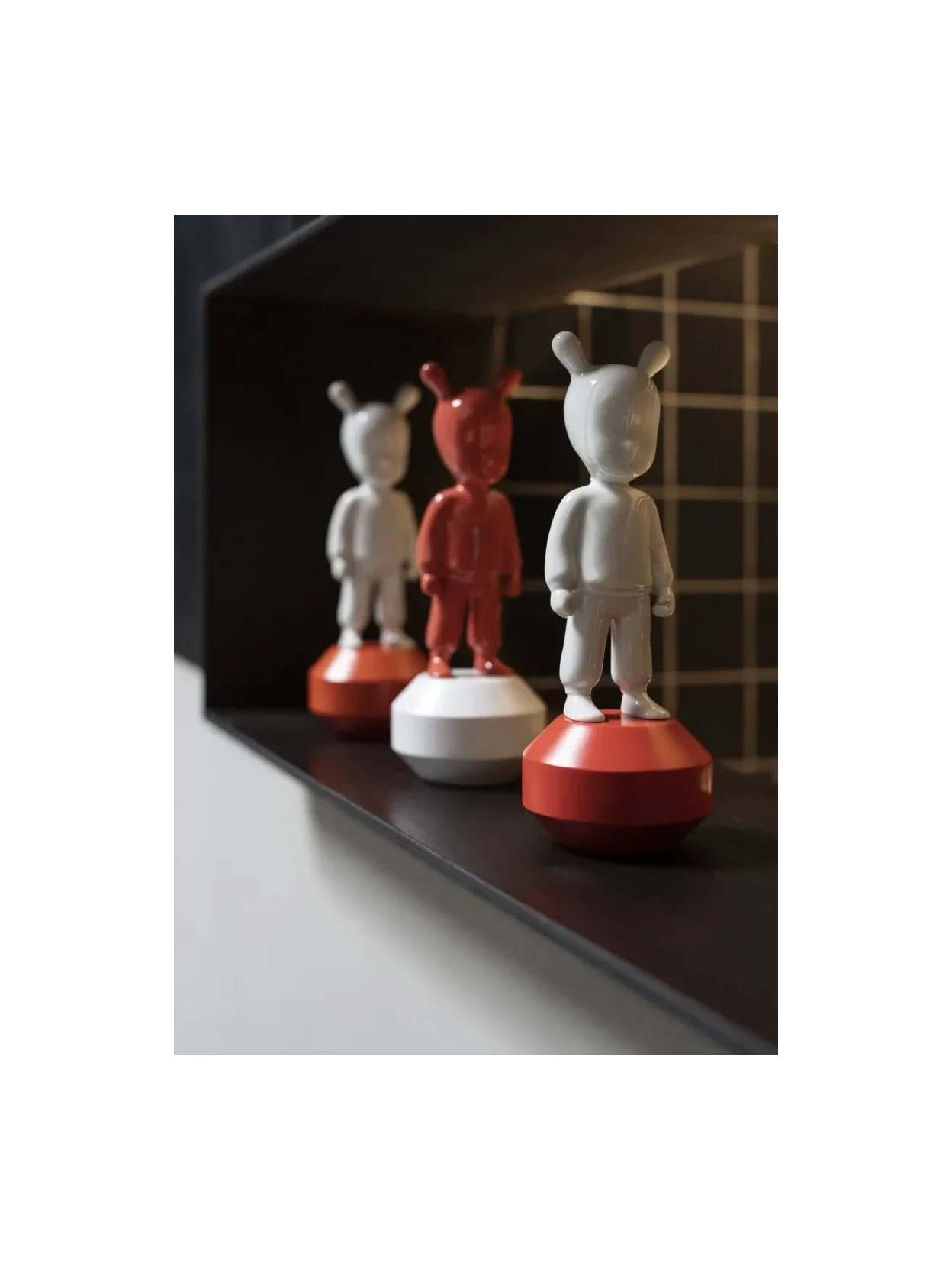 The Red Guest is a glossy porcelain sculpture created by Jaime Hayon for The Guest collection by Lladró, the creative laboratory where internationally renowned artists reinterpret the iconic character. Handcrafted, this version combines the vivacity of bright red with the purity of the white base, creating an elegant and contemporary contrast. The brilliance of the porcelain reflects light with finesse, giving the sculpture a dramatic and sophisticated presence.