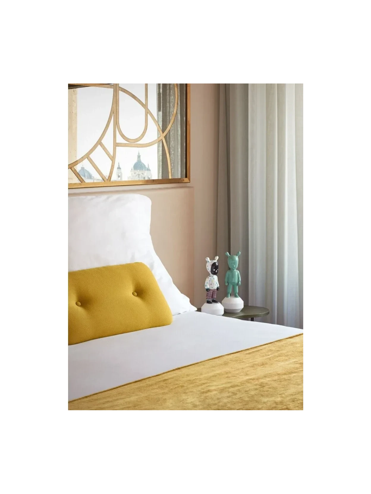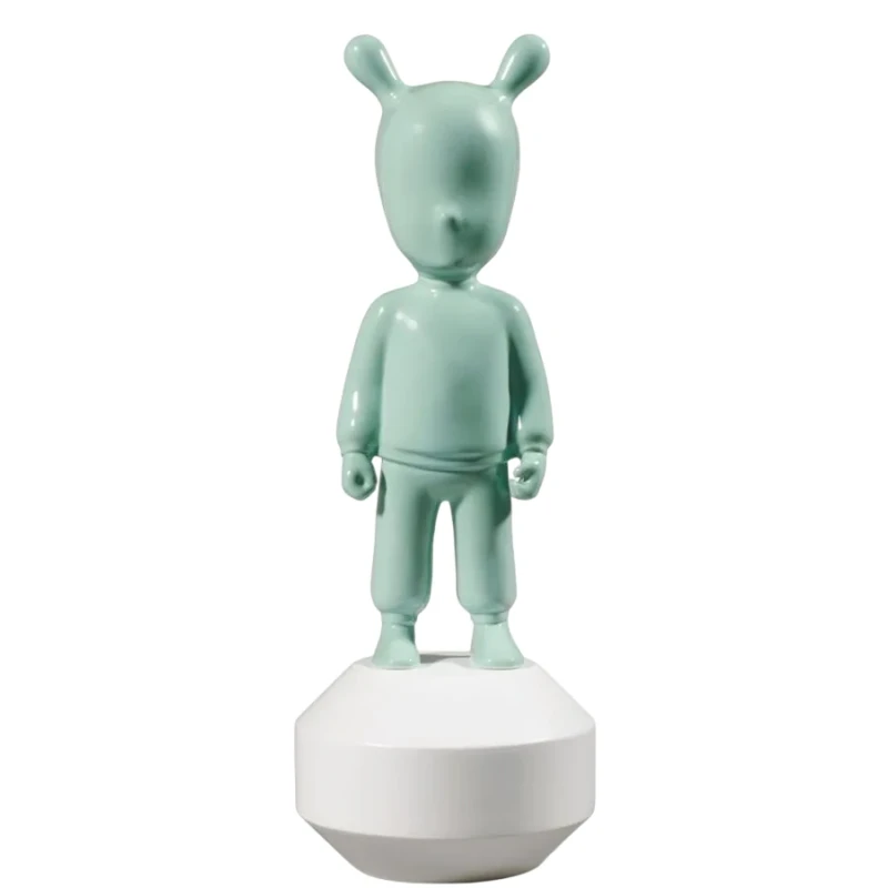 The Green Guest is a glossy porcelain sculpture created by Jaime Hayon for The Guest collection by Lladró Atelier, the brand's creative laboratory that invites international artists to reinterpret this iconic character. This version stands out for its bright green hue, conveying freshness, harmony, and a connection with nature, perfectly contrasting with the white base. Handmade in the Lladró workshops in Spain, the sculpture elegantly reflects light, becoming a visually striking decorative element.