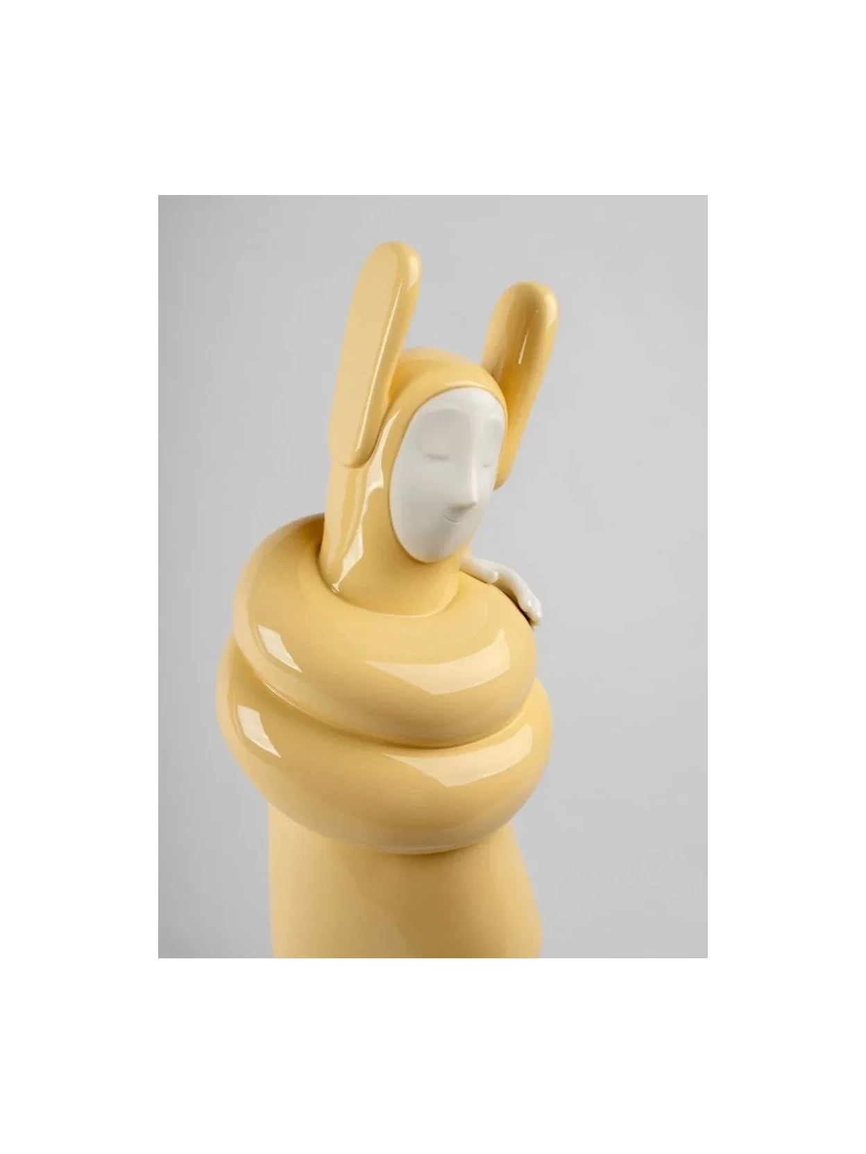 Embraced Yellow is Jaime Hayon's latest glossy porcelain creation for Lladró, celebrating the concepts of self-care and inner harmony. Ten years after the celebrated The Guest collection, Hayon introduces a new character: a human embracing himself, a symbol of self-care and emotional balance. Handcrafted by Raul Rubio in the Lladró workshops, the sculpture stands out for its glossy yellow finish, which conveys energy, positivity, and warmth. The work combines traditional craftsmanship, contemporary design, and emotional significance, becoming an iconic piece for collectors and lovers of modern art.