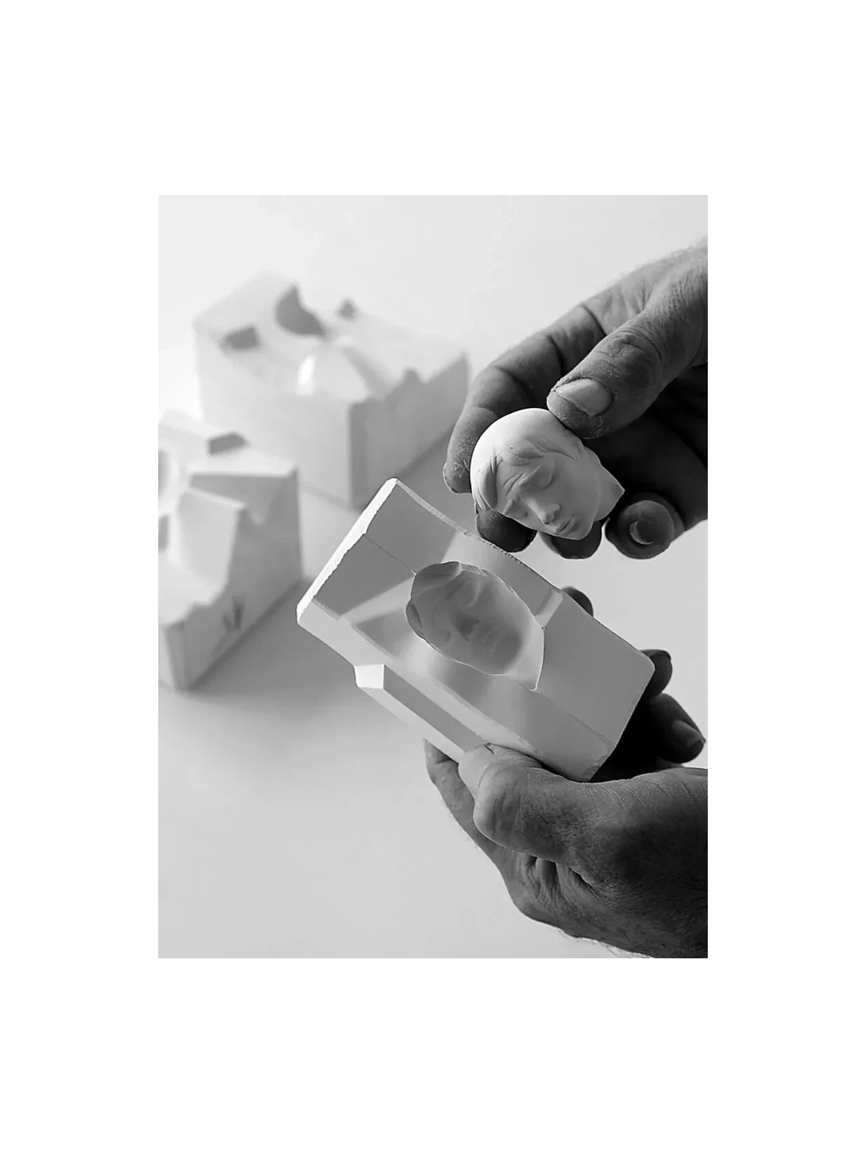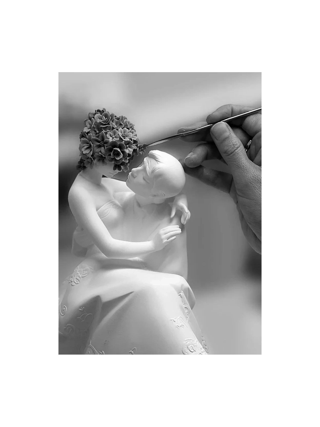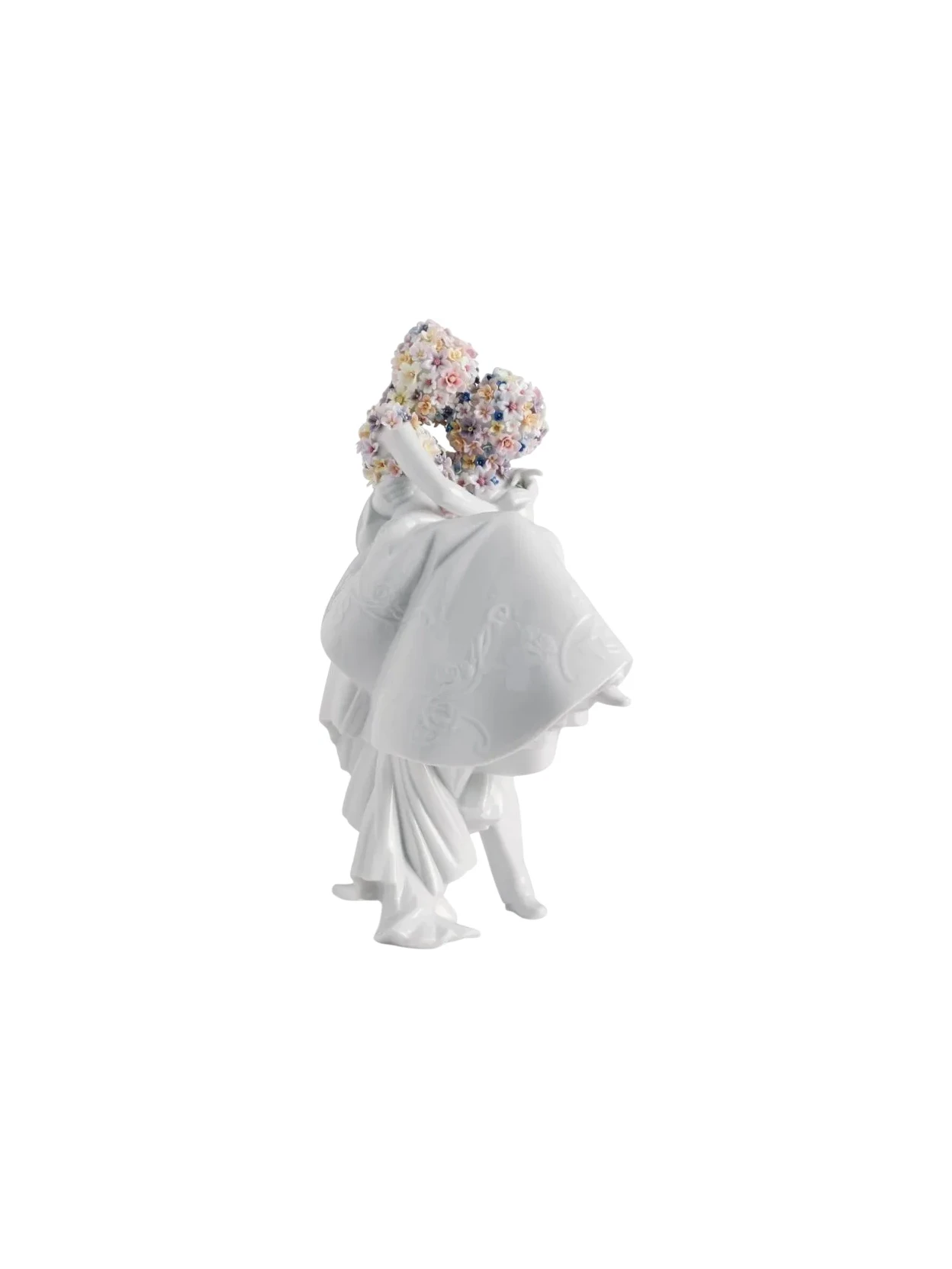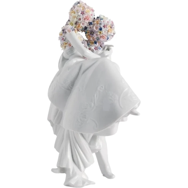 The Love II Flowers Sculpture is part of the third chapter of Lladró's Re-Cyclos project, which transforms existing elements into new artistic creations through collaborations with internationally renowned designers. Clare Page and Harry Richardson, members of the Committee and British designers, reinterpret flowers, animals, and angels from the Lladró catalog, offering a poetic and original vision of the phases of love, the uniqueness of the animal kingdom, and universal curiosity. In this sculpture, the couple's faces are covered in flowers, a symbol of delicacy, harmony, and emotional beauty. The glossy white porcelain enhances elegance and sophistication, while the craftsmanship of sculptor José Puche lends uniqueness and artistic value to the piece.