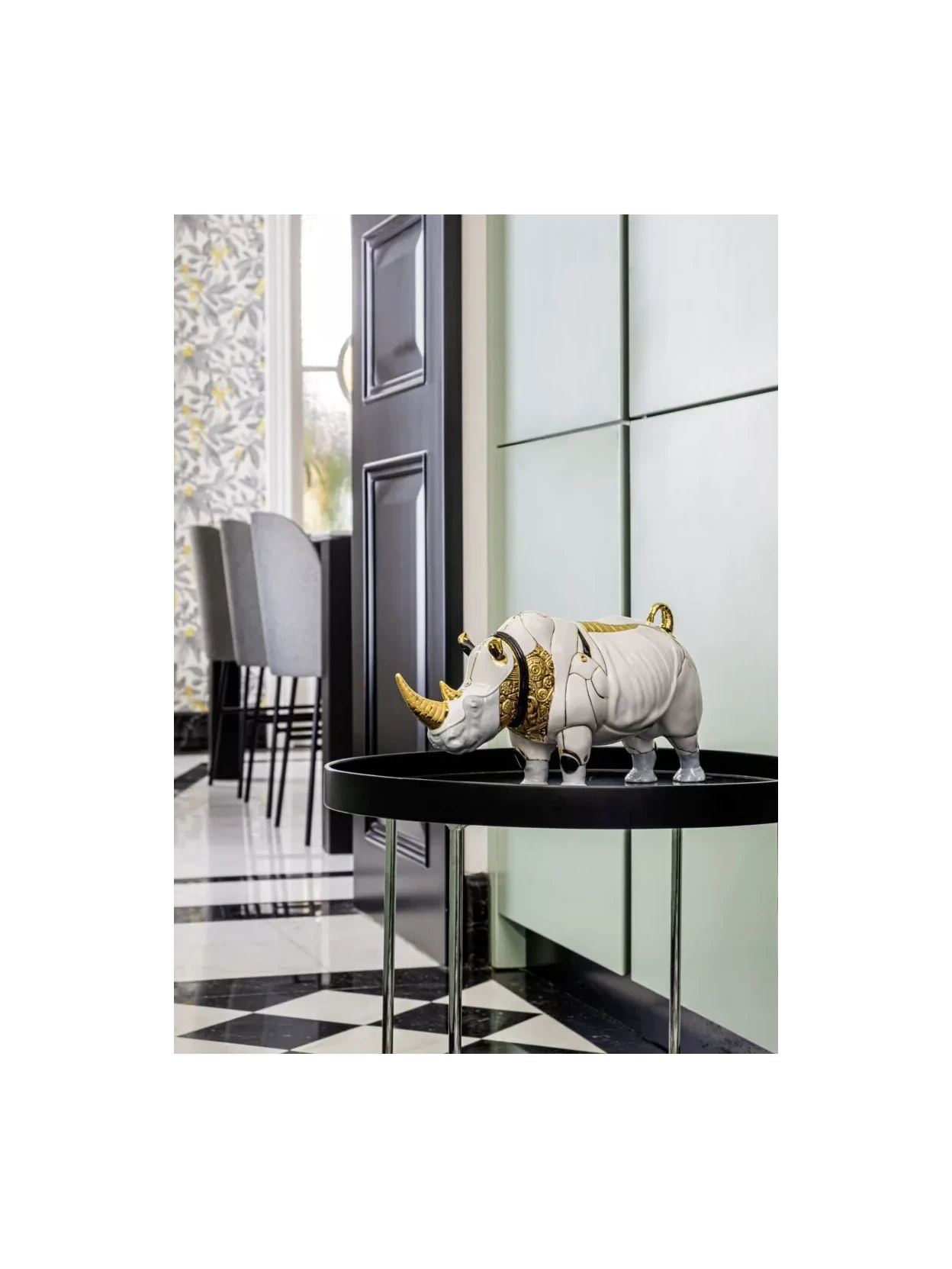 Cyborg Rhino is an imposing white porcelain creation with gold and gray details, a symbol of strength and innovation. Handcrafted by Ernest Massuet, it combines the elegance of the animal world with the precision of futuristic design.
