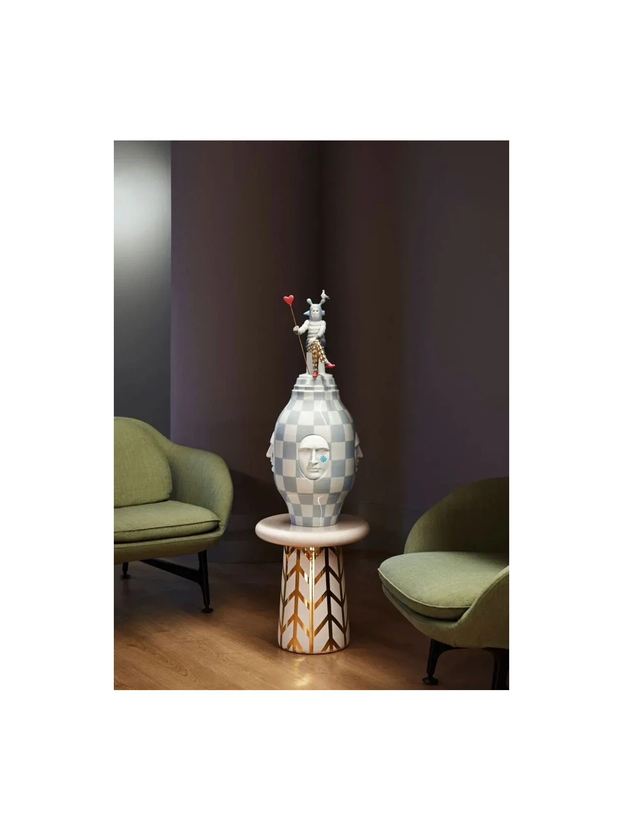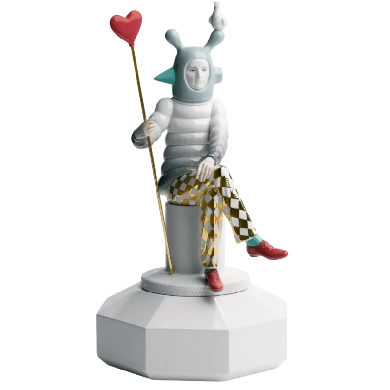 Discover Lladró's "The Lover II" sculpture, created by Jaime Hayon. An elegant and playful piece that combines love and fantasy, perfect for enriching your collection with a touch of contemporary design. A lustrous finish with metal details, it stands 38 cm tall and is unique.