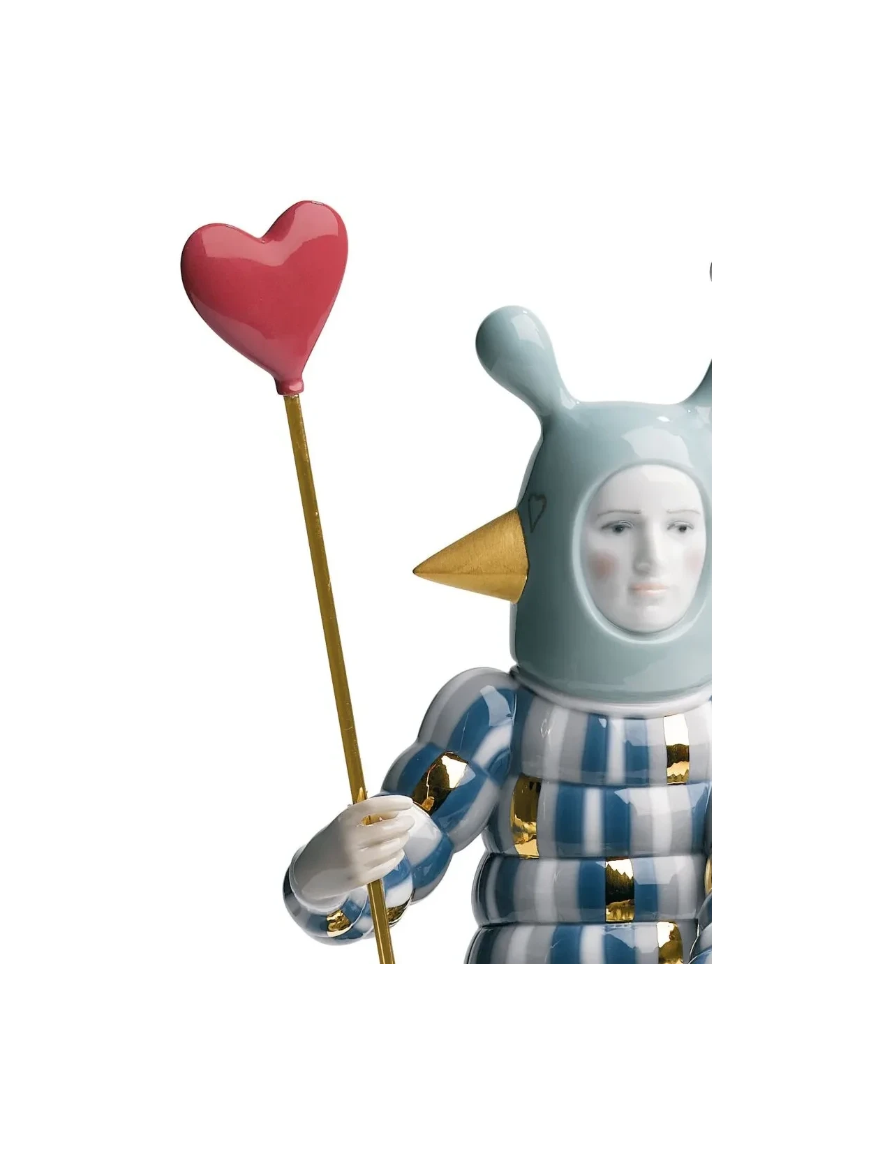 Discover the glossy porcelain sculpture "The Lover III" by Lladró, created by Jaime Hayon. With a blue base, gold details, and touches of red on the heart and shoes, this piece combines elegance, playful fantasy, and modernity. Perfect for enriching your collection with unique style.