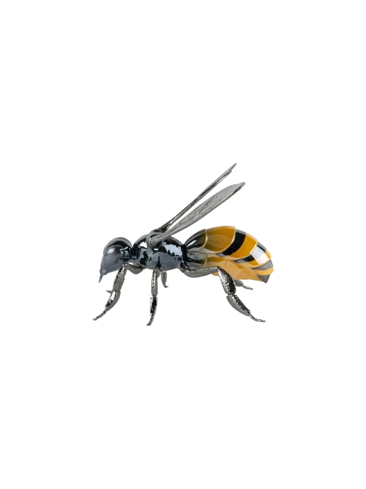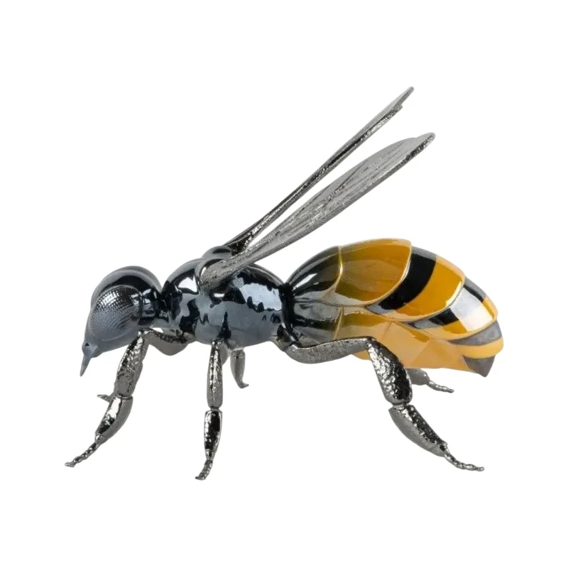 The Bee sculpture, part of the Awesome Insects collection by José Luis Santes, is a refined work of polished porcelain with metallic and pearlescent lustres that enhance its colors and textures. This unique piece pays homage to bees, a crucial pollinating species for our ecosystem, highlighting the importance of their protection to preserve biodiversity. Measuring 15 x 26 x 20 cm and available in black and yellow, the sculpture combines aesthetics and meaning, becoming a striking decorative accessory for any space. Handmade in Spain, it guarantees Lladró quality and craftsmanship.