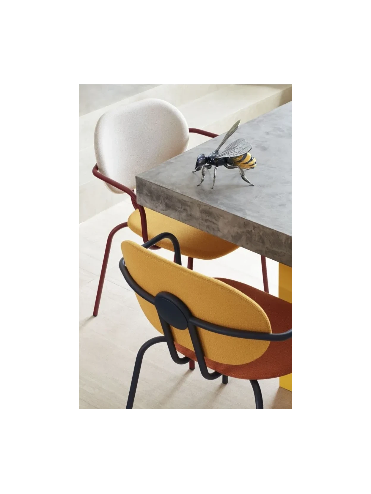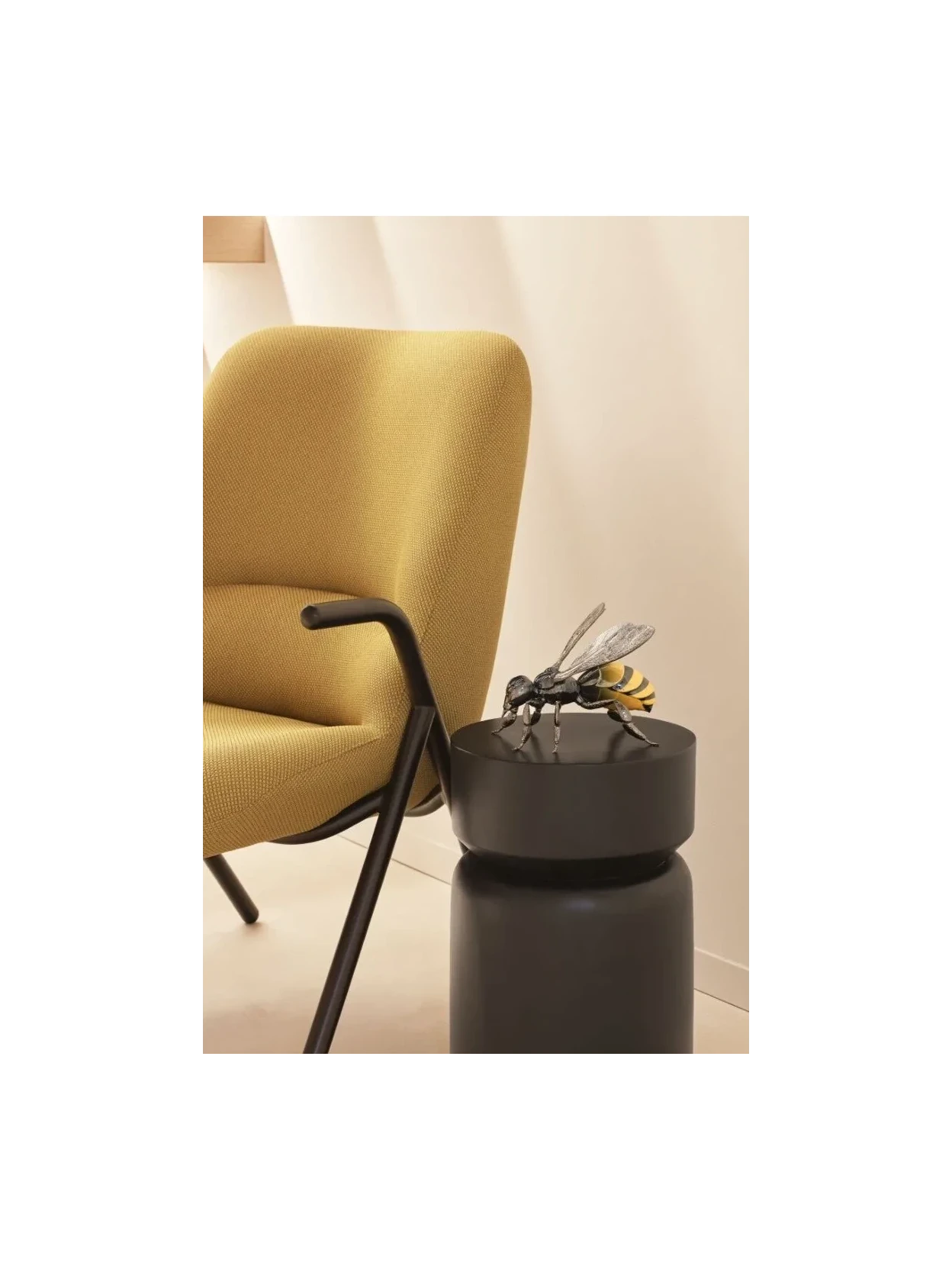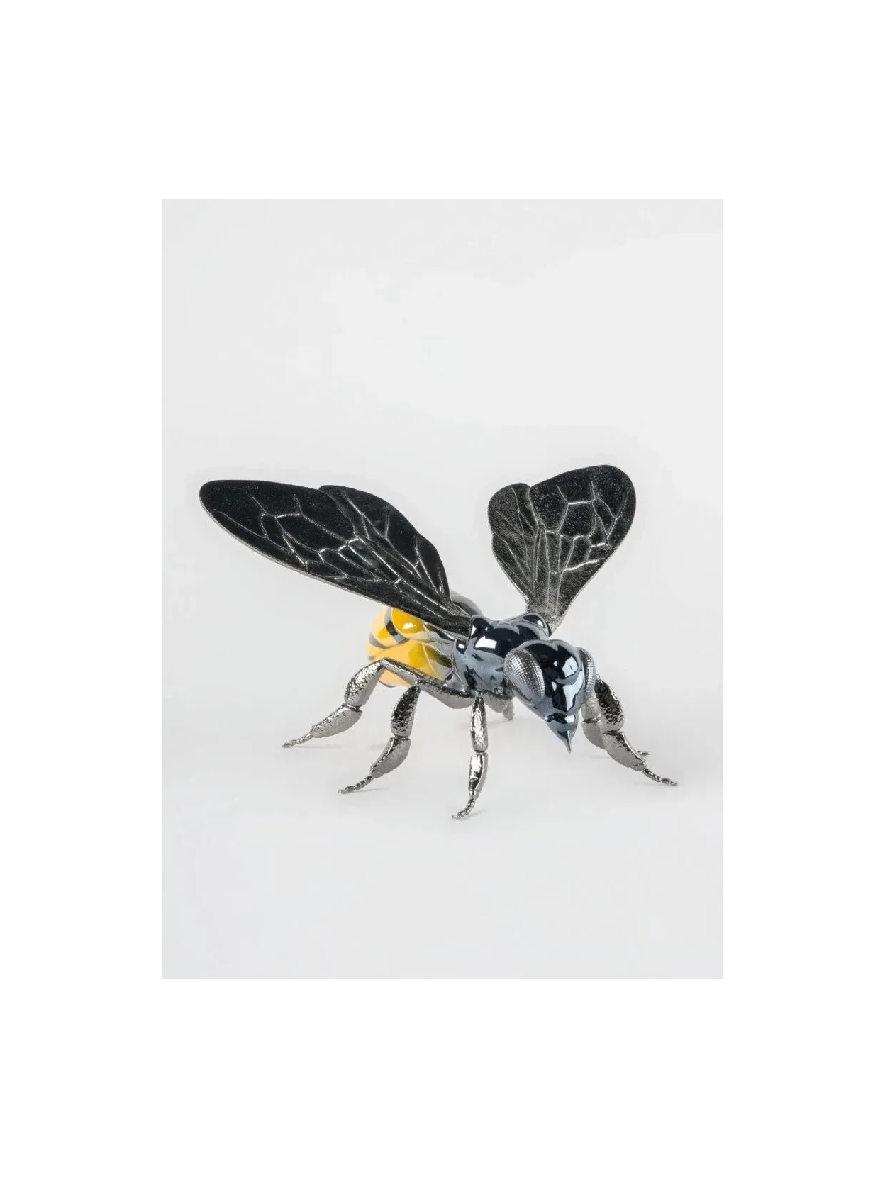 Discover the "Bee" sculpture in glossy porcelain with metallic and pearlescent details, created by José Luis Santes. With its black and yellow hues, it's a striking decorative piece that celebrates the importance of bees to biodiversity. Perfect as a gift or to complement your collection.