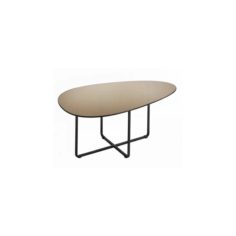 The Ginni coffee table by Capodarte is a furnishing accessory designed to enhance contemporary spaces thanks to its essential silhouette and refined materials. The black metal base offers stability and visual lightness, while the bronze glass top, shaped into a soft, irregular shape, creates a play of reflections that lends depth and character to the space. Perfect as a standalone element or paired with other heights from the same line, Ginni blends seamlessly into modern living rooms, lounge areas, and elegant spaces, transforming any space into a dynamic and sophisticated composition. With its exclusive design and dramatic presence, this coffee table becomes a distinctive detail capable of enhancing the style of the living room and encouraging daily use.