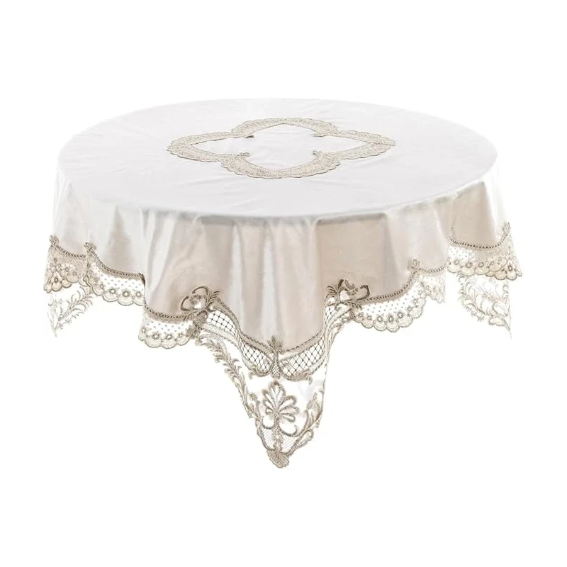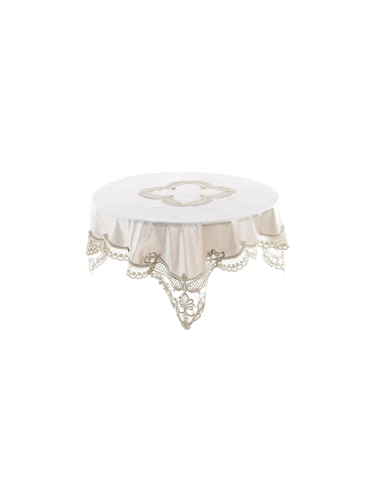 The Blanc MariClò 125x125 cm tablecloth in an elegant beige shade is embellished with a refined decorative lace. Perfect for decorating round and square tables with style, it adds a touch of class and sophistication to any occasion.